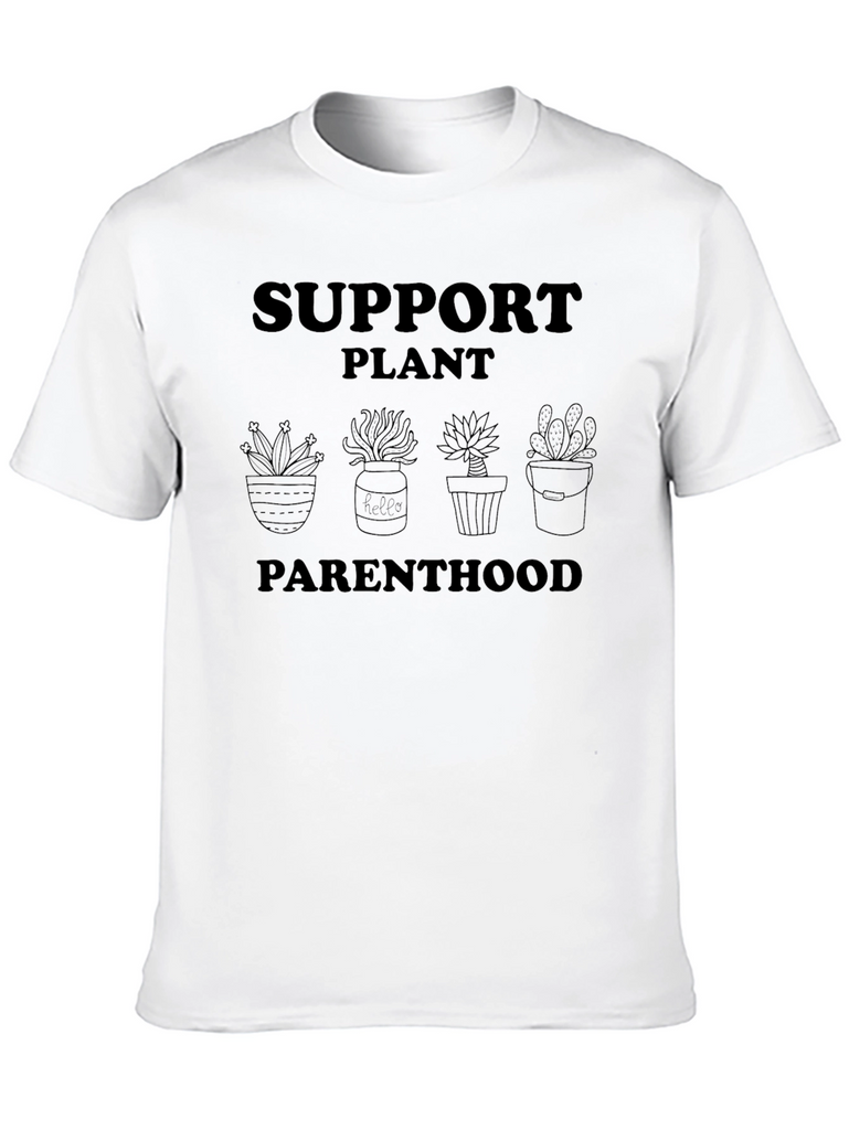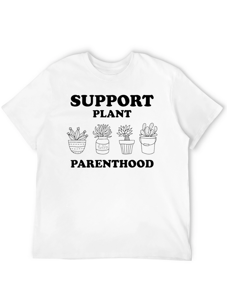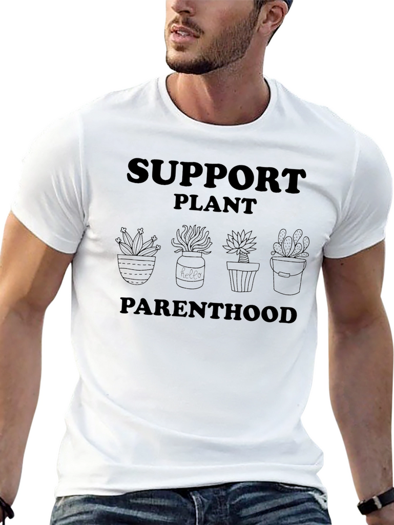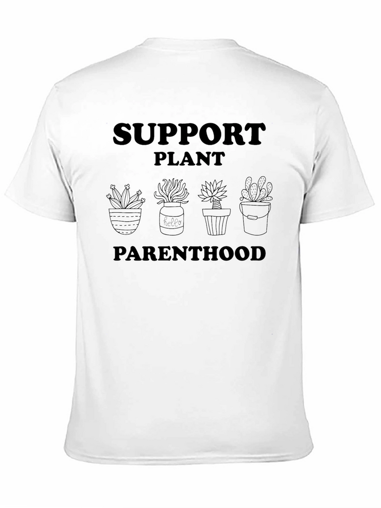 Show your love for plants with this unique black t-shirt. Featuring a playful "Support Plant Parenthood" slogan alongside cute potted plant illustrations, this tee is perfect for plant lovers and gardeners alike. Made from comfortable material, it's ideal for everyday wear. Whether you're tending to your indoor jungle or simply want to express your passion for botany, this t-shirt is a great way to showcase your leafy green enthusiasm. Soft, breathable and stylish, this plant-themed tee is bound to become a wardrobe favorite.