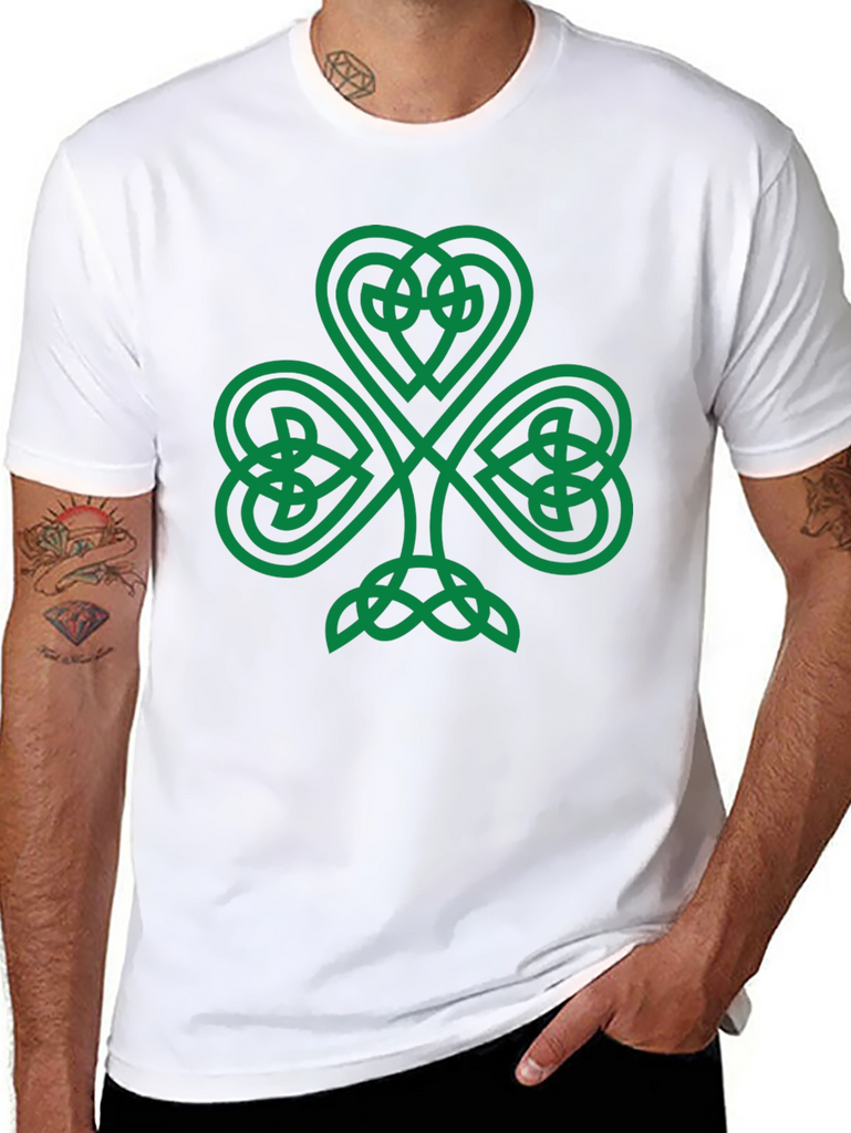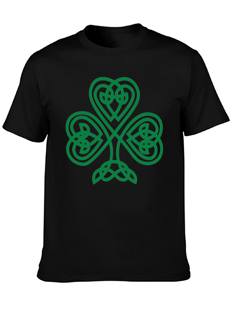 Show off your Irish pride with this stylish black t-shirt featuring a bold green Shamrock Celtic knot design. The intricate knotwork creates a visually stunning representation of the iconic three-leaf clover. Made from what appears to be a comfortable cotton blend, this tee is perfect for casual wear, St. Patrick's Day celebrations, or as a unique addition to your wardrobe. Its classic fit ensures a flattering look for all body types. Grab this tee and celebrate your Irish heritage in style!