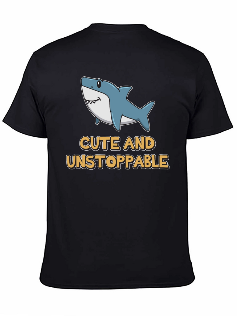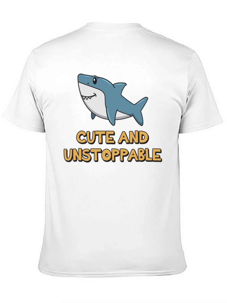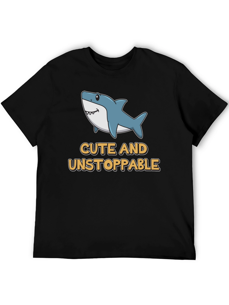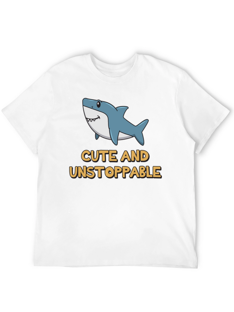 Showcase your unique personality with this eye-catching graphic tee. Featuring a playful cartoon shark design and the bold statement "Cute and Unstoppable", this shirt is sure to turn heads. Crafted from a soft, breathable fabric, it offers all-day comfort. The classic crew neck and short sleeves make it a versatile addition to any wardrobe. Pair it with jeans for a casual look or dress it up with a blazer for a night out. Perfect for shark enthusiasts and anyone who wants to make a statement, this tee is a must-have for those who dare to be different and embrace their inner strength with a touch of charm.