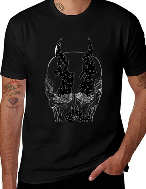 Skull Horns Graphic Tee - Black Cotton Comfort