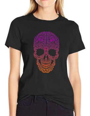 Ornamental Skull Graphic Tee - Black Cotton T-Shirt