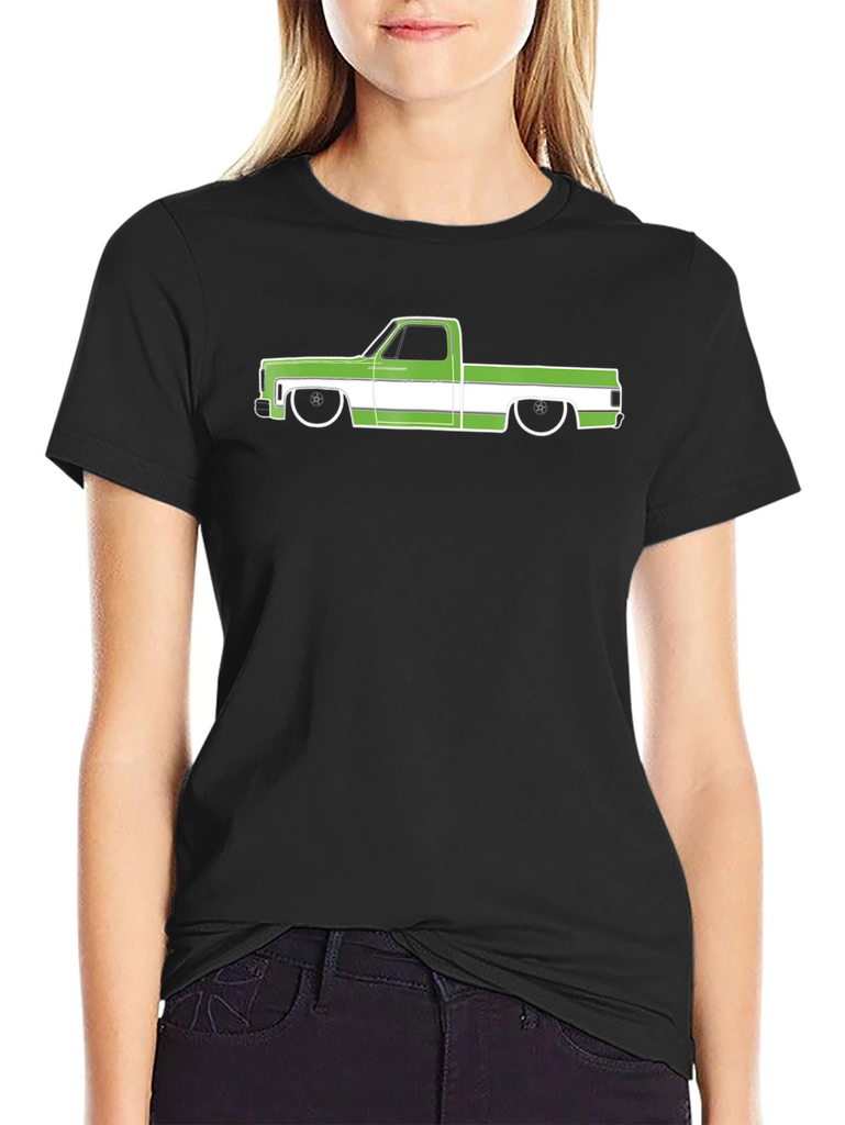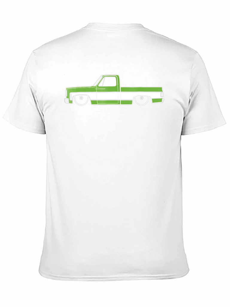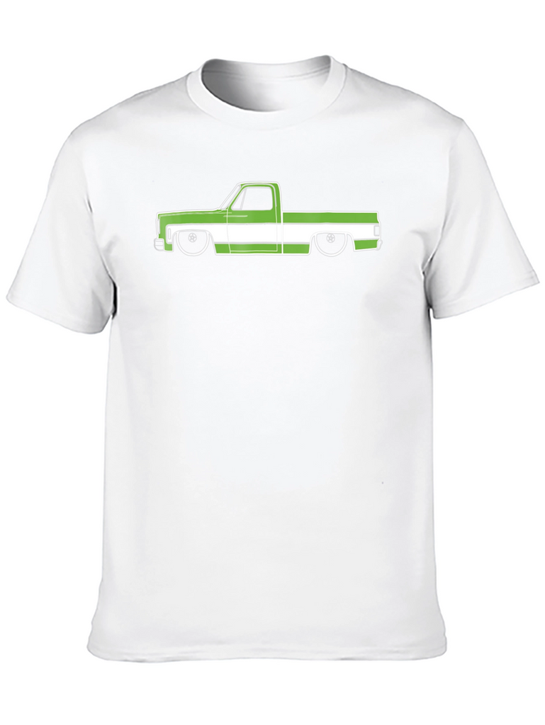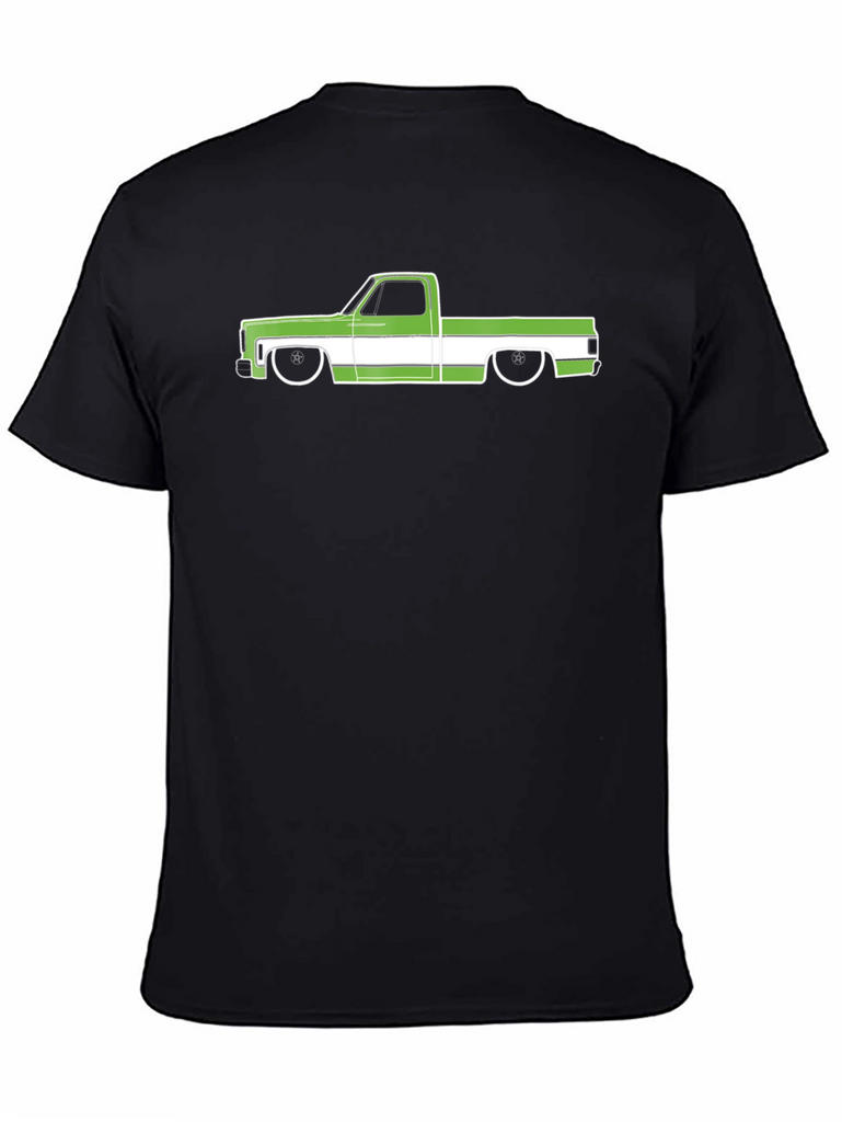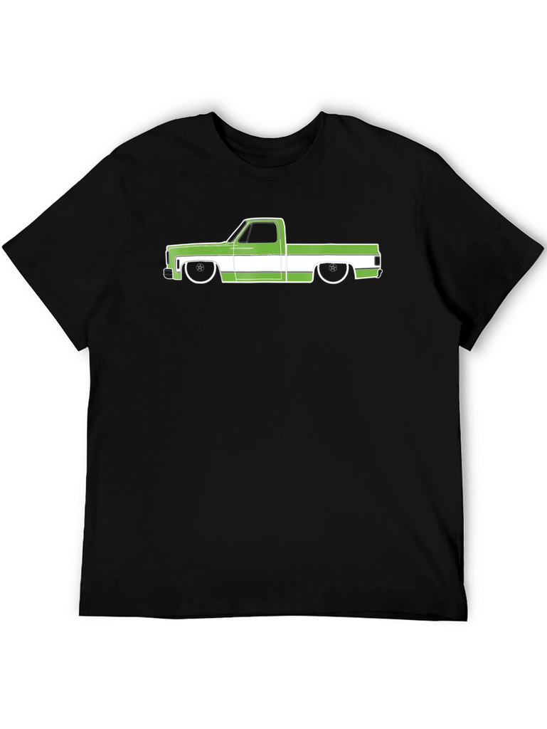 Show off your love for classic trucks with this stylish black t-shirt. The tee features a vibrant graphic of a vintage truck in green and white, adding a touch of retro charm to your wardrobe. Made from soft, breathable cotton, this shirt offers all-day comfort and a relaxed fit. The graphic is eye-catching and well-defined, making it a perfect statement piece for casual outings or car enthusiast gatherings. Pair it with jeans or shorts for a cool, laid-back look. This unique tee is sure to turn heads and spark conversations wherever you go.