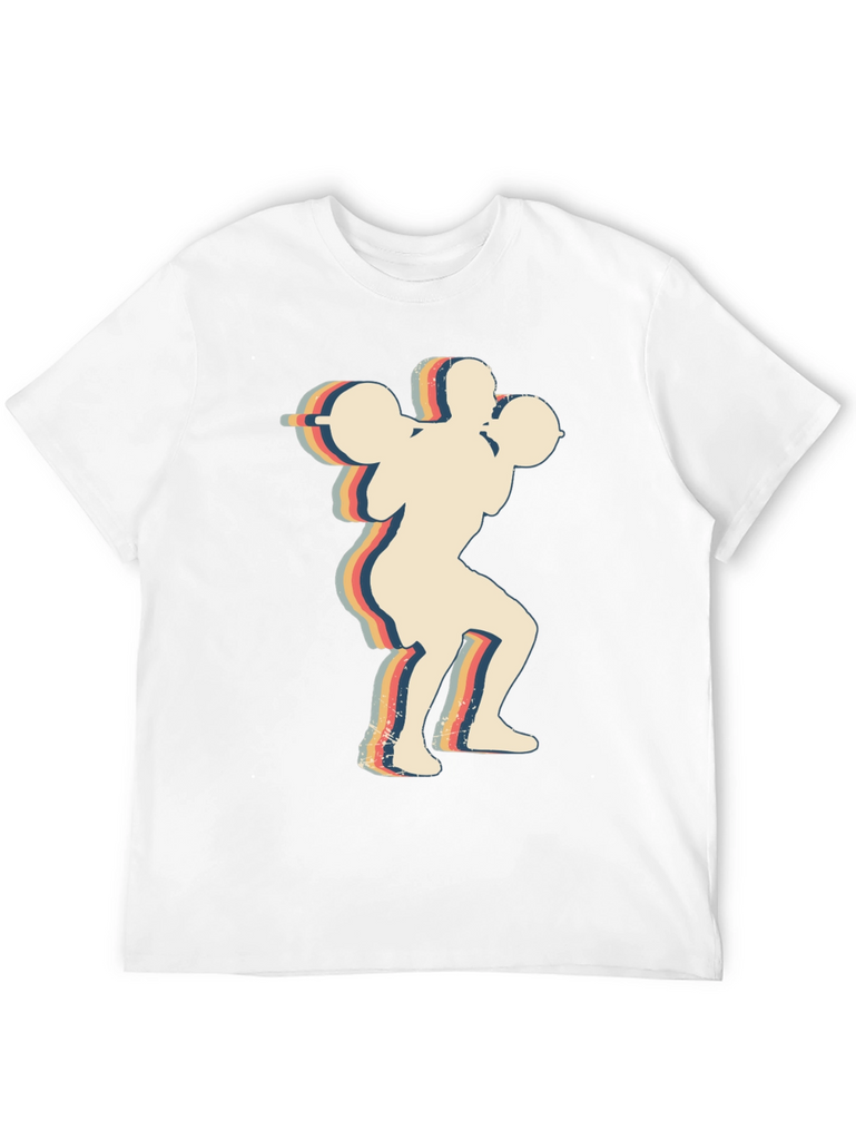 Show off your love for fitness with this stylish retro weightlifter t-shirt. The black tee features a vintage-inspired graphic of a weightlifter in action, complete with colorful stripes that give it a cool, retro vibe. Made from a soft, breathable fabric, this shirt is comfortable enough for your toughest workouts or casual everyday wear. It's a great way to express your passion for weightlifting and fitness. Perfect for gym enthusiasts, athletes, or anyone who appreciates unique and eye-catching apparel. This durable and versatile tee will become a favorite in your wardrobe. Get yours today and add a touch of retro style to your fitness gear!