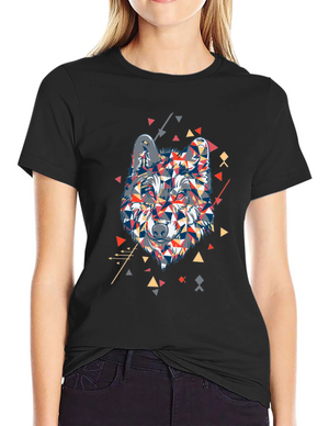 Geometric Wolf Graphic Tee - Cool Black T-Shirt