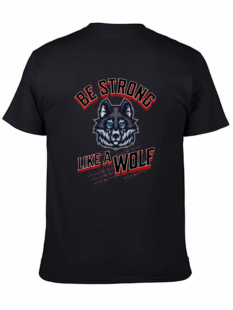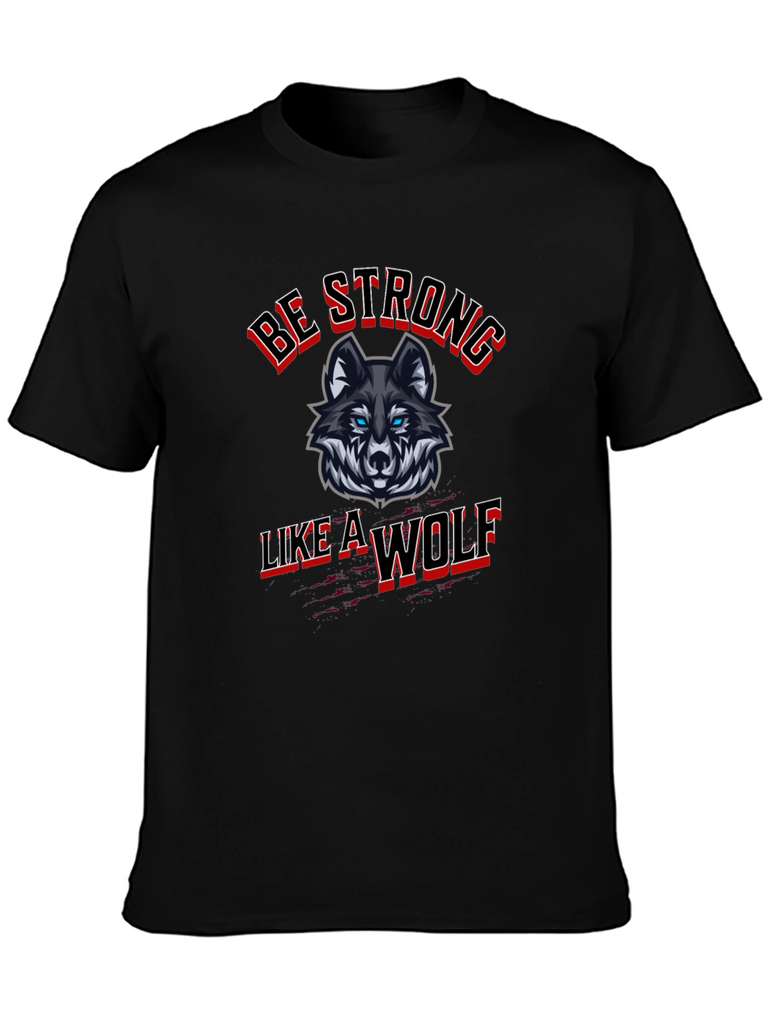 Show your inner strength with this bold black T-shirt. Featuring a striking wolf graphic on the front, accompanied by the empowering message "Be Strong Like A Wolf" in a captivating red font. The design is both eye-catching and inspiring, perfect for those who value resilience and determination. Crafted from comfortable material, this tee is ideal for everyday wear, workouts, or casual outings. Embrace your wild side and make a statement with this unique and motivational T-shirt. Stand out from the crowd and show your unwavering spirit with this standout design.