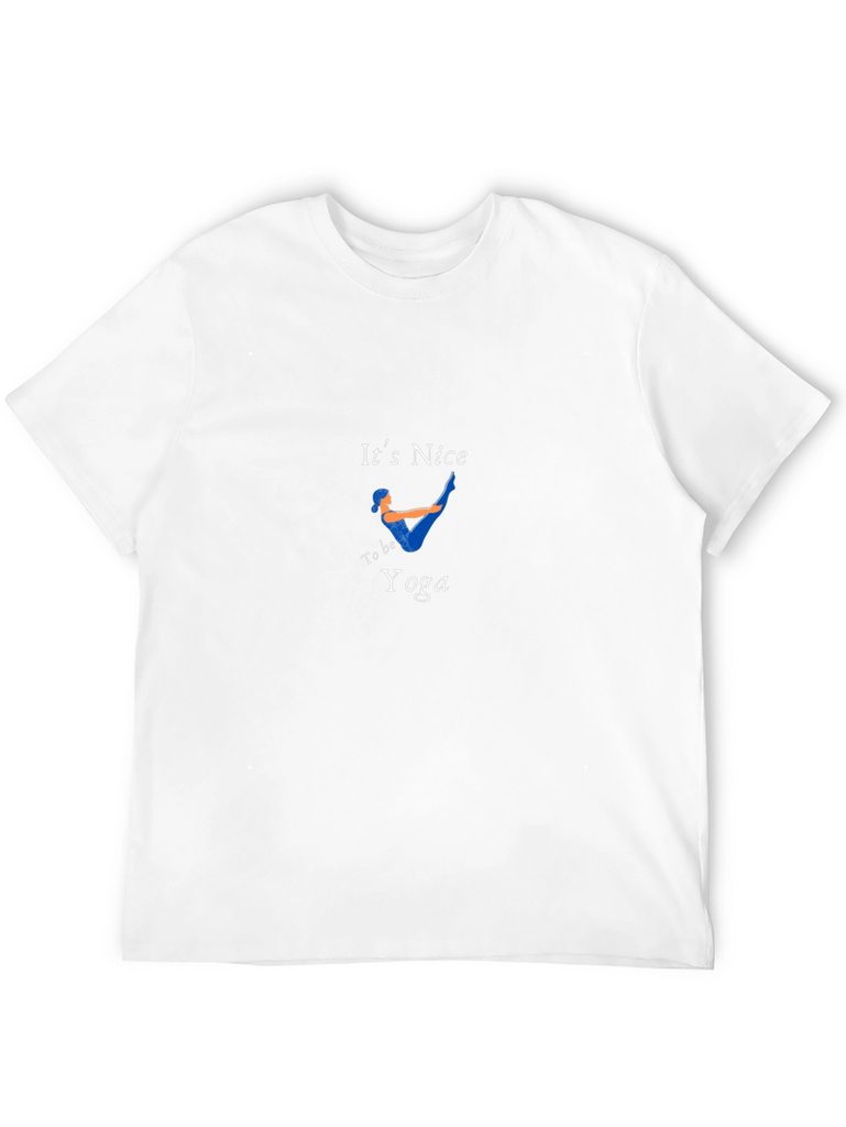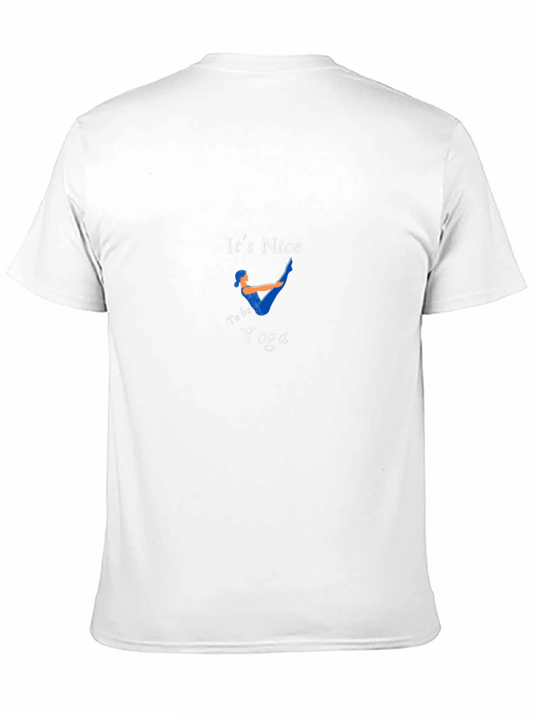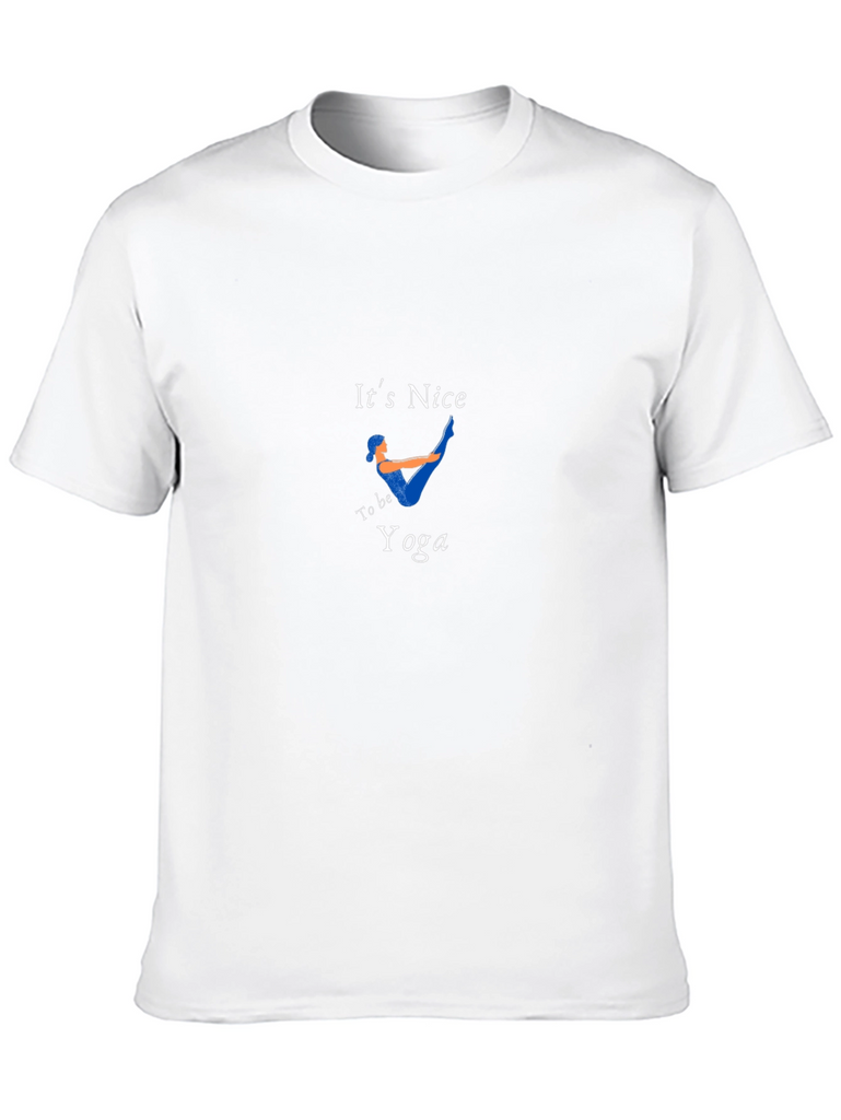 This stylish black t-shirt is perfect for yoga enthusiasts. It features a unique design with the words "It's Nice to be Yoga" and an artistic rendering of a person in a yoga pose. Made from a soft and comfortable fabric, this tee is ideal for wearing to yoga class, the gym, or just for casual everyday wear. The minimalist design makes it a versatile addition to any wardrobe, allowing you to express your love for yoga in a subtle yet fashionable way. Show off your passion for wellness with this trendy tee.