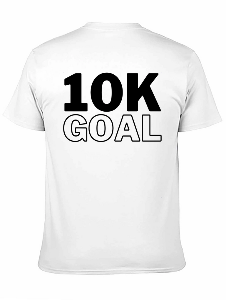 Achieve your fitness goals in style with this motivational black t-shirt. Featuring a bold "10K GOAL" print, this tee is perfect for workouts, running, or casual wear. The shirt appears to be made from a soft, breathable fabric to keep you comfortable during any activity. Its classic fit and short sleeves make it versatile for layering or wearing on its own. Whether you're hitting the gym or pounding the pavement, let this t-shirt serve as a reminder to stay focused and reach your target. Show the world your ambition and commitment to fitness with this stylish and functional tee.