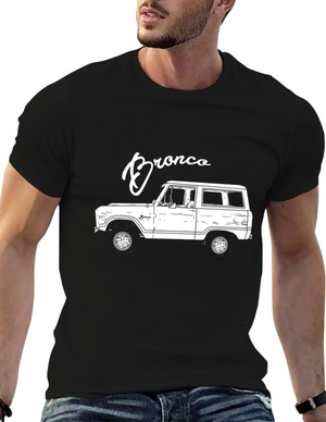 Show your love for the iconic 1980 Bronco with this unique graphic tee. Featuring a detailed illustration of the classic Bronco in front of a vintage American flag design, overlaid with '1980' and 'Built Tough' in bold, eye-catching text, this shirt is perfect for car enthusiasts. The shirt is black, adding a touch of cool to your style. Made with comfortable and durable materials, it's ideal for everyday wear, car meets, or as a standout piece in your casual wardrobe. A must-have for any Bronco fan!