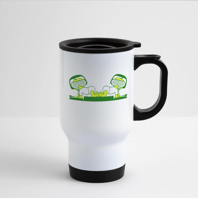 We're an on-the-go society. We eat on-the-go, we work on-the-go, we grab and we run. This travel mug with handle is the ideal companion for the "on-the-go" in you. Good for hot or cold beverages, this mug will keep up with the breakneck pace of your day. Product is BPA-free and phthalate-free.