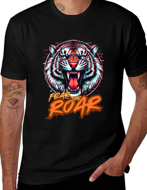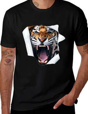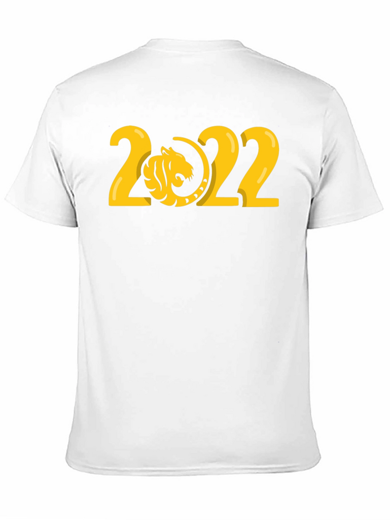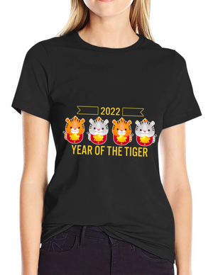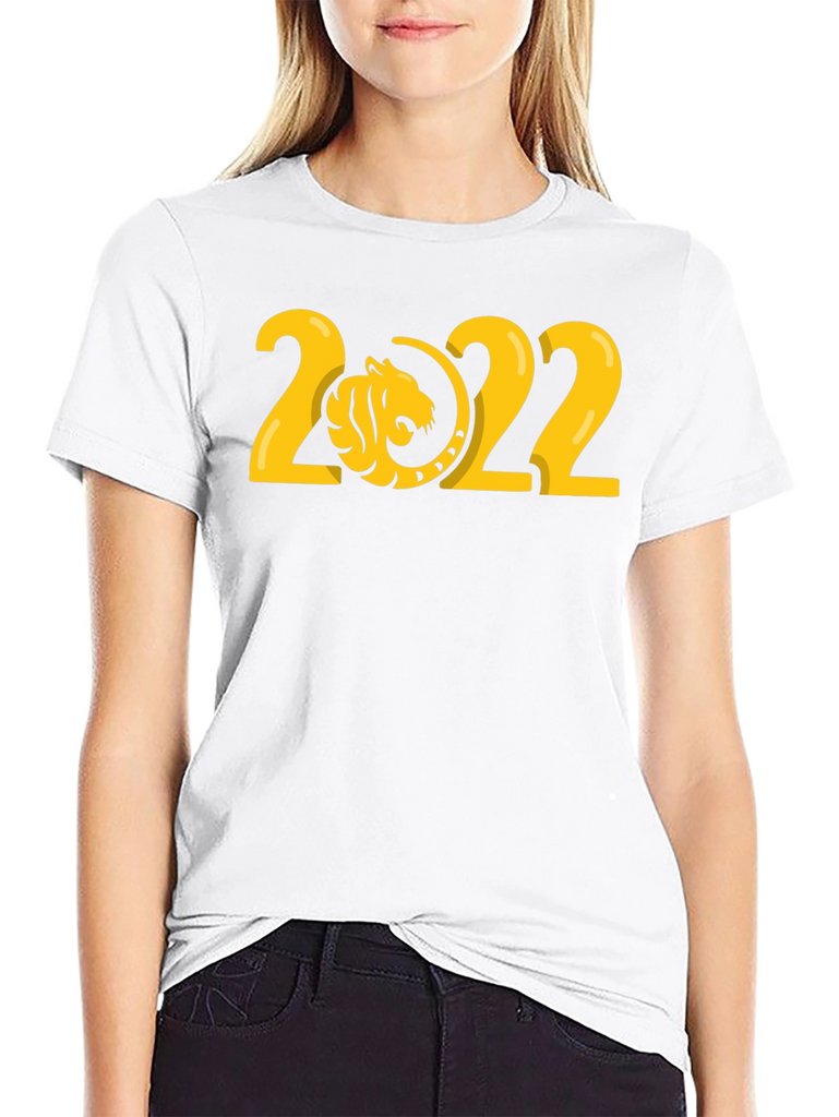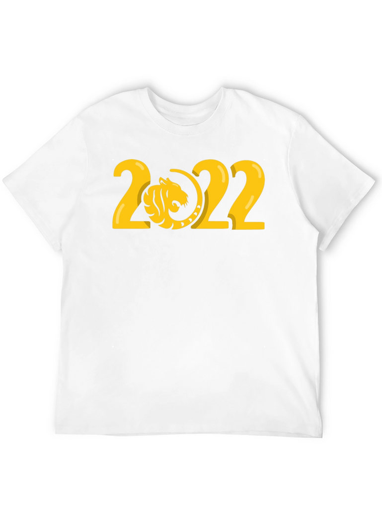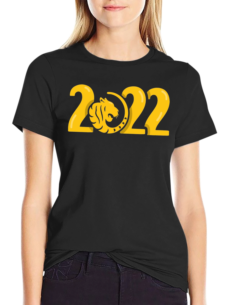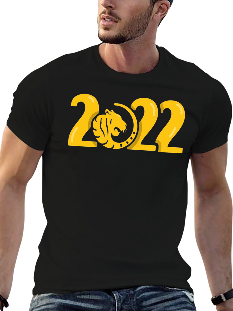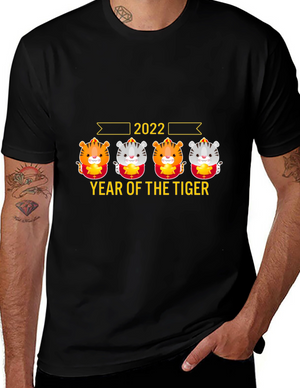 Celebrate the Year of the Tiger with this bold graphic t-shirt! Featuring a striking "2022" design with a stylized tiger emblem, this tee is perfect for anyone looking to add a unique touch to their wardrobe. The design is printed in a vibrant yellow color on a classic black t-shirt. This t-shirt would be ideal for casual outings, gatherings with friends, or even as a thoughtful gift for someone born in the Year of the Tiger. Stand out from the crowd and showcase your individual style with this eye-catching t-shirt.