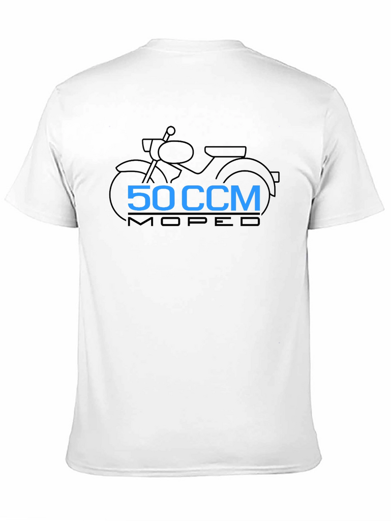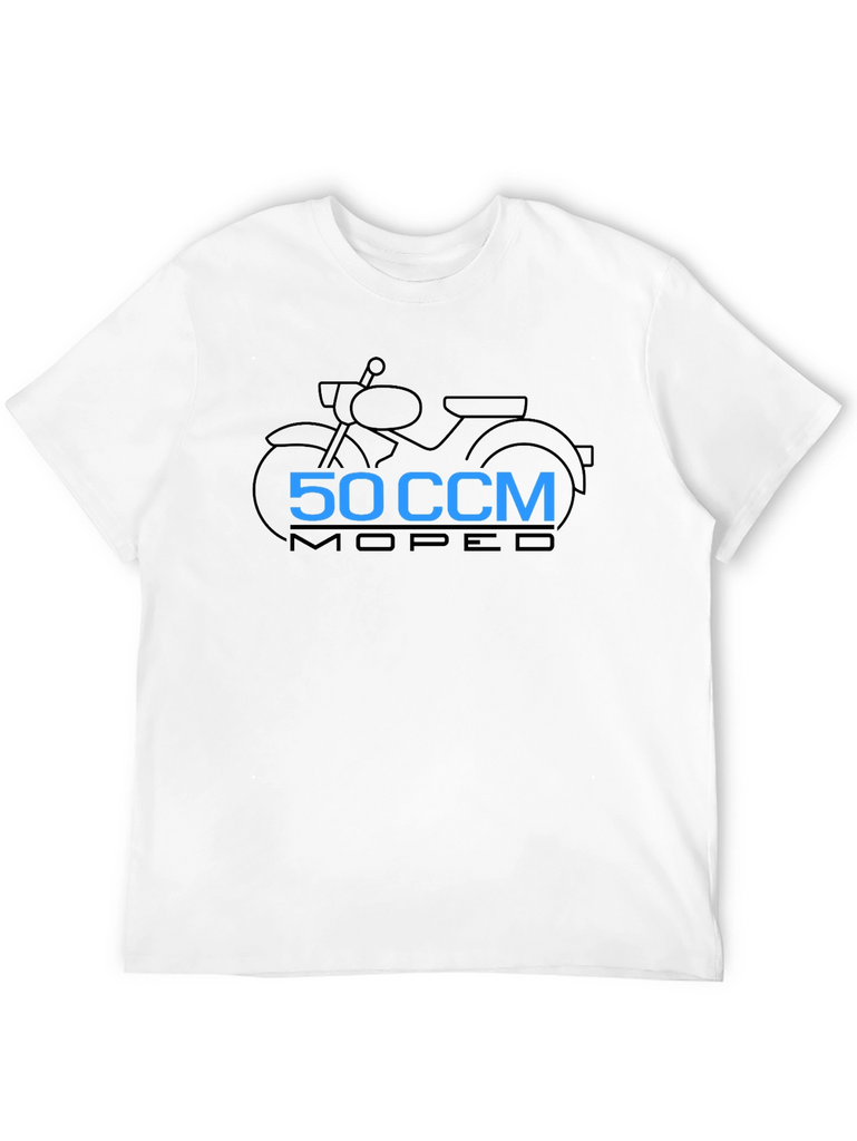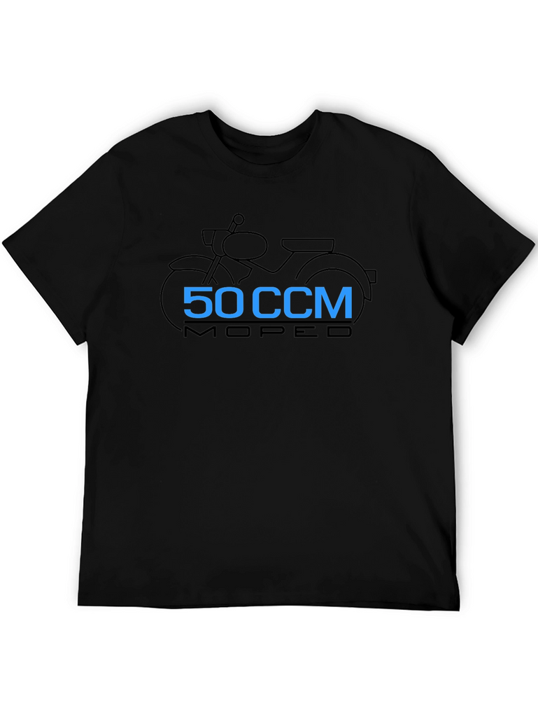 Show your love for classic mopeds with this stylish black t-shirt. Featuring a vintage-inspired moped graphic with bold '50 CCM MOPED' text, this tee is perfect for motorcycle enthusiasts and anyone who appreciates retro designs. The t-shirt appears to be made from soft, comfortable fabric, making it ideal for everyday wear. Its classic fit ensures a flattering silhouette for any body type. Wear it while cruising around town, hanging out with friends, or simply expressing your passion for mopeds. A great gift for the moped lover in your life.