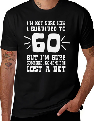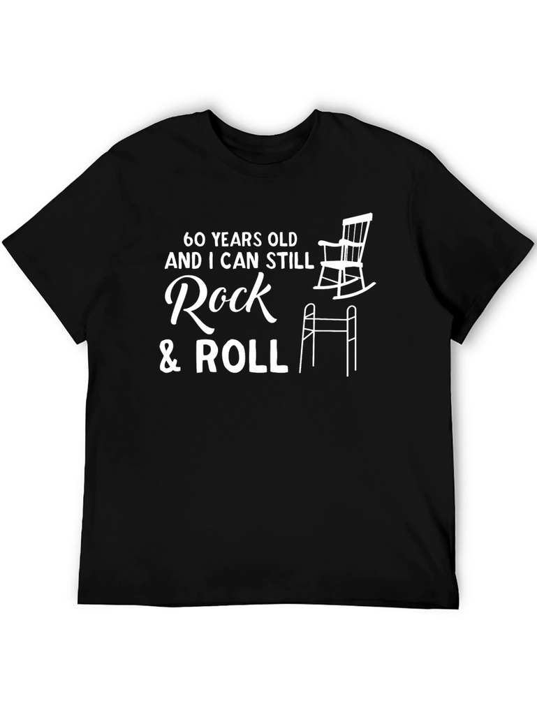 Celebrate turning 60 with this humorous t-shirt! The shirt features a playful design with the saying "60 Years Old and I can still Rock & Roll". It also features a rocking chair and walker. Made from comfortable, breathable fabric, this tee is perfect for casual wear, birthday parties, or as a fun gift for someone who has reached their 60th birthday! The black color makes the white graphic pop, ensuring the message is clear and humorous. Show off your youthful spirit with this witty and stylish t-shirt.
