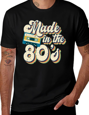 Step back in time with this stylish black t-shirt featuring a bold "80 RULE" graphic. The design is printed in crisp white, providing a striking contrast against the dark background. The shirt is made from a comfortable, soft-looking fabric, perfect for everyday wear. The classic fit makes it a versatile piece for casual outings, concerts, or themed parties. Show off your love for the 80s with this unique and eye-catching tee. This shirt is a must-have for anyone looking to add a touch of vintage flair to their wardrobe.