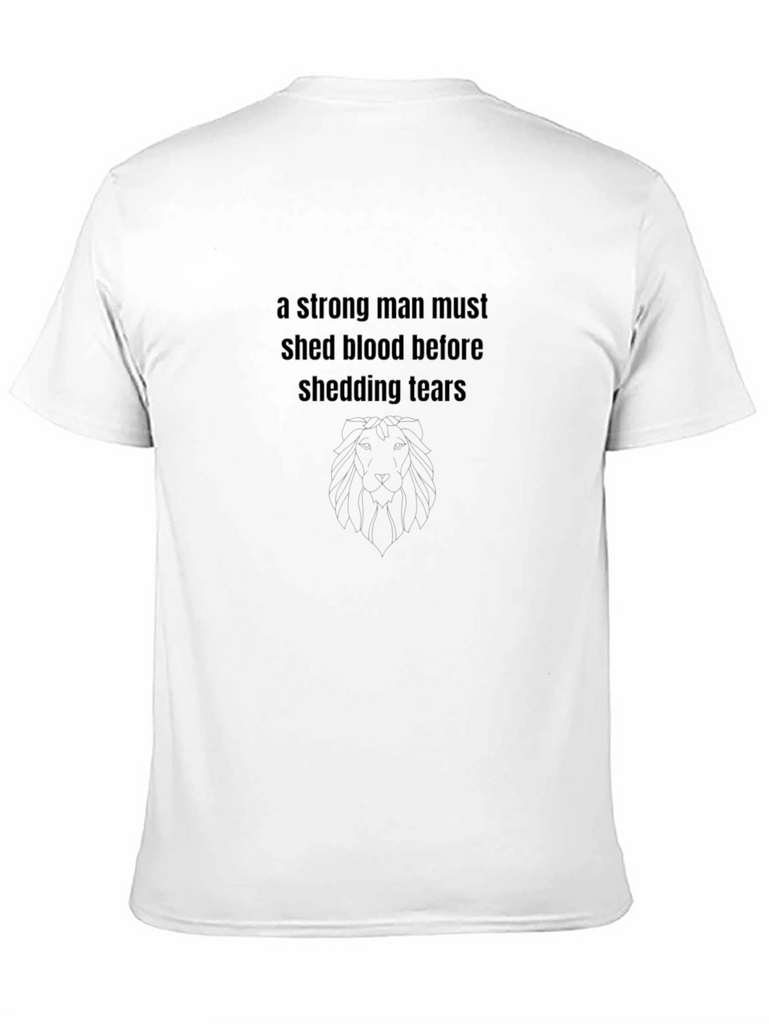 Show off your inner strength with this bold and stylish black t-shirt. Made from comfortable and durable cotton, this tee features a powerful quote: "A strong man must shed blood before shedding tears." The minimalist design makes it versatile for everyday wear, while the motivational message adds a touch of personality. Ideal for casual outings, gym sessions, or simply lounging at home, this t-shirt is a must-have for anyone who values resilience and determination. Wear it proudly and inspire those around you to embrace their own inner strength.