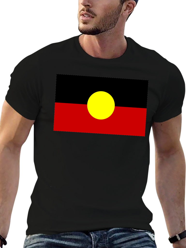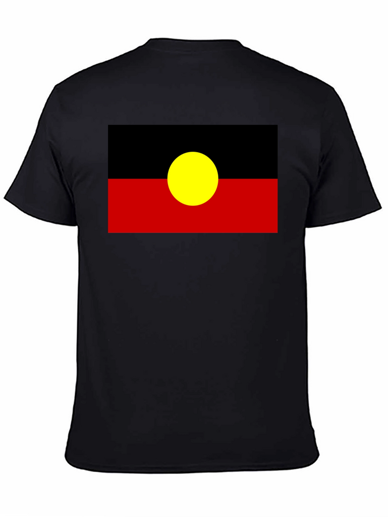 Show your pride with this eye-catching t-shirt featuring the iconic Aboriginal Flag. The shirt showcases the black, red, and yellow flag design prominently on the chest. Made from a comfortable, breathable fabric, this classic fit tee is perfect for everyday wear, cultural events, or as a statement piece. The bold graphic ensures you'll stand out while celebrating Aboriginal culture and heritage. Wear it with jeans for a casual look, or dress it up for special occasions. A perfect gift for anyone who appreciates unique and meaningful apparel.