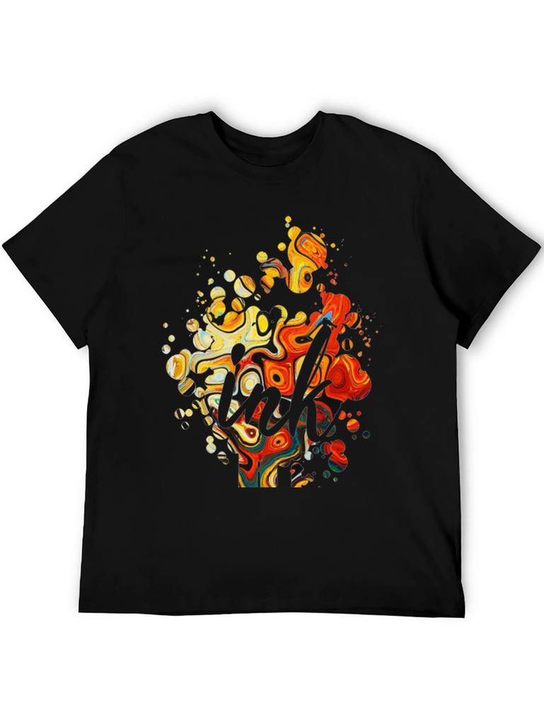 Showcase your unique style with this eye-catching black t-shirt. Featuring a vibrant, abstract art graphic on the front, this tee is perfect for those who love to stand out. The design incorporates a unique blend of colors and fluid shapes. Made from a comfortable and breathable fabric, this shirt is ideal for everyday wear, casual outings, or expressing your artistic flair. The classic crew neck and short sleeves offer a timeless fit. Pair it with your favorite jeans or shorts for a relaxed, stylish look. Get ready to turn heads with this wearable piece of art!