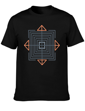 Elevate your style with this unique black T-shirt featuring a captivating abstract geometric design. The eye-catching graphic showcases a modern landscape with pastel-colored shapes, including triangles, pyramids, and spheres, creating a visually stunning effect. This tee is perfect for those who appreciate contemporary art and want to make a bold statement. Crafted from soft, breathable fabric, this T-shirt offers both comfort and style. Whether you're heading to a casual outing, a creative event, or simply want to express your artistic side, this versatile tee is an excellent choice. Stand out from the crowd with this wearable piece of art!