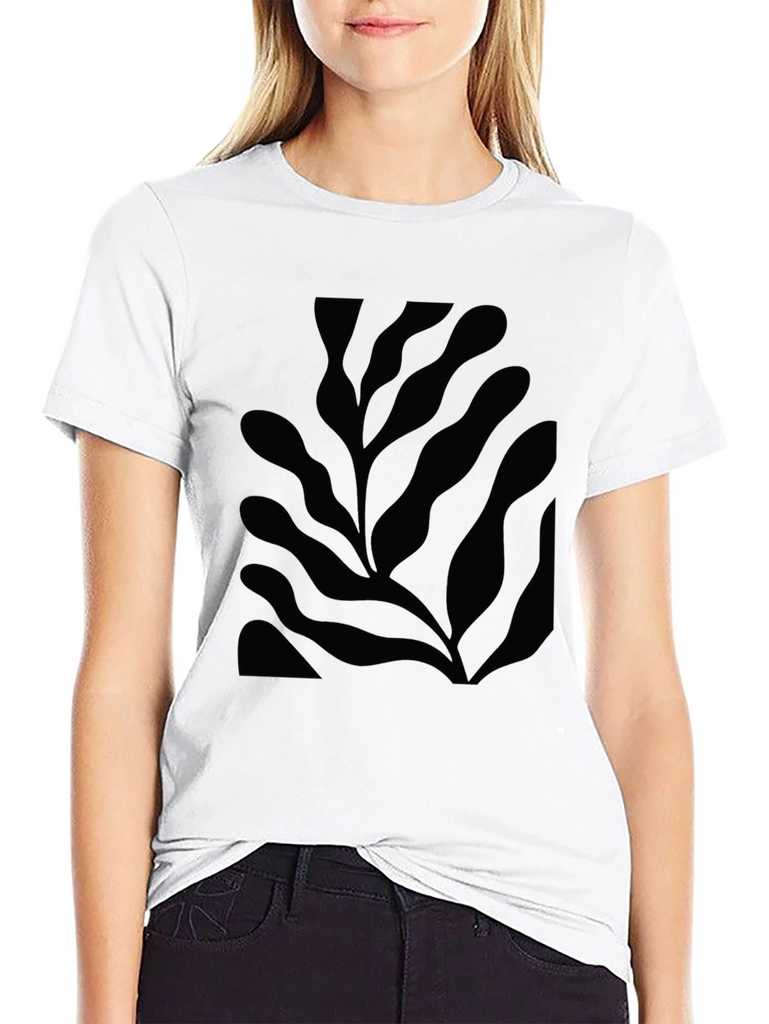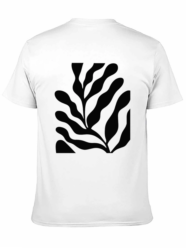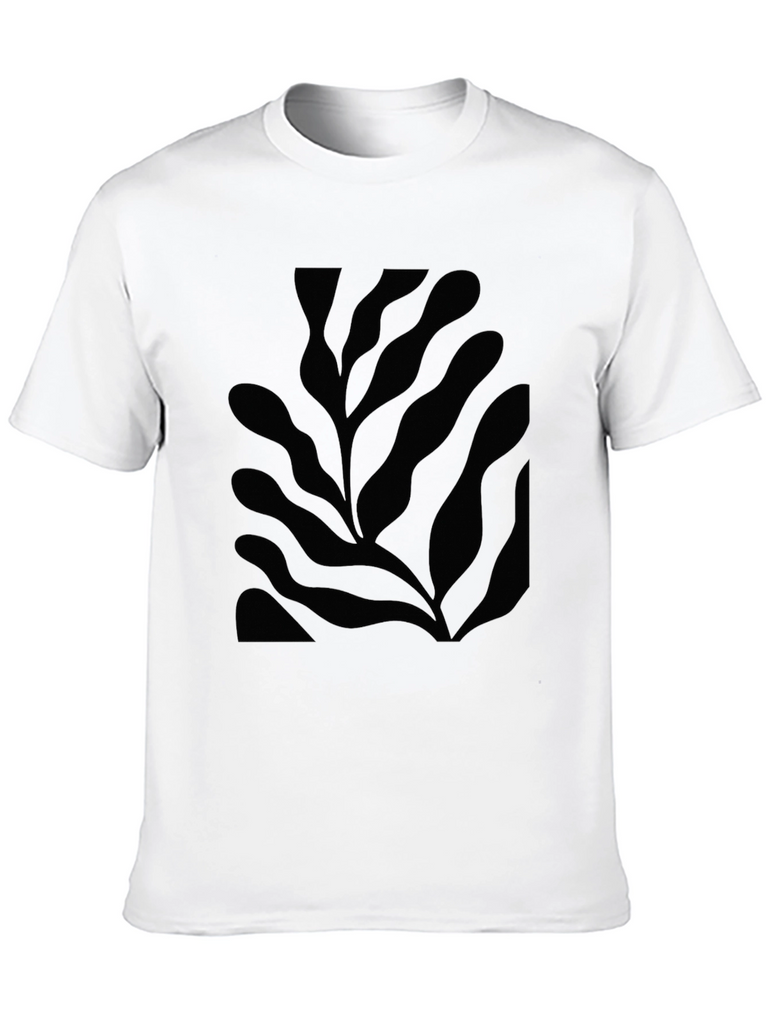 Showcase your unique style with this modern black t-shirt. Featuring a bold, abstract leaf design, this tee is perfect for adding a touch of artistic flair to your wardrobe. The shirt appears to be made from a comfortable material, likely cotton or a cotton blend, ensuring breathability and all-day comfort. Dress it up with dark jeans and boots for a night out, or keep it casual with shorts for a weekend adventure. Stand out from the crowd with this stylish and versatile t-shirt, designed to elevate any look.