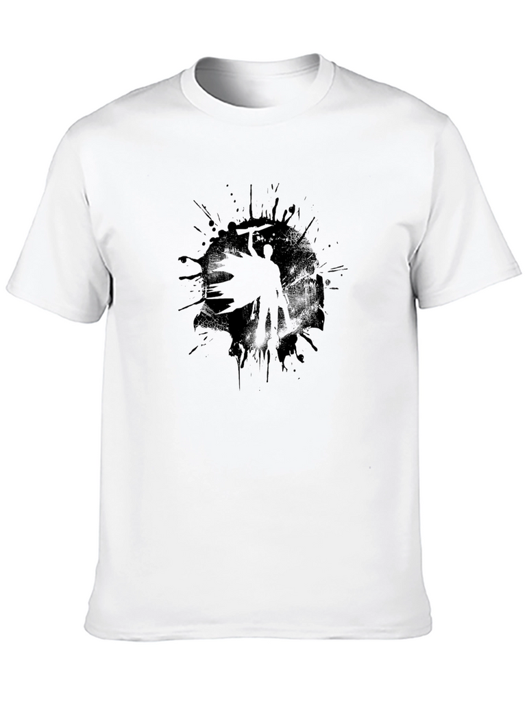 This stylish black t-shirt features a striking abstract graphic print. The design showcases a warrior-like figure with an intense silhouette, adding a unique and edgy touch to your wardrobe. Made from a comfortable, soft-touch fabric, this tee is perfect for everyday wear. The classic fit ensures a relaxed and flattering look for various body types. Ideal for casual outings, concerts, or simply lounging at home, this t-shirt combines comfort and style effortlessly. The bold graphic makes it a great conversation starter and a standout piece in any outfit. Easy to care for and durable, this t-shirt will quickly become a go-to favorite.