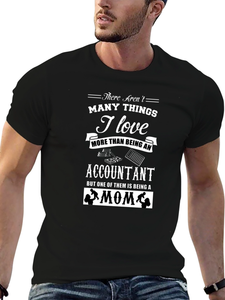 Show your pride with this fun graphic t-shirt. Made from comfortable materials, this black tee features a playful design for accountant moms. The text highlights the wearer's love for being both an accountant and a mom, making it a perfect gift or everyday wear. Ideal for casual outings, work events, or just lounging at home, this shirt lets you express your dual passions with style and humor. Get yours today and celebrate the best of both worlds!