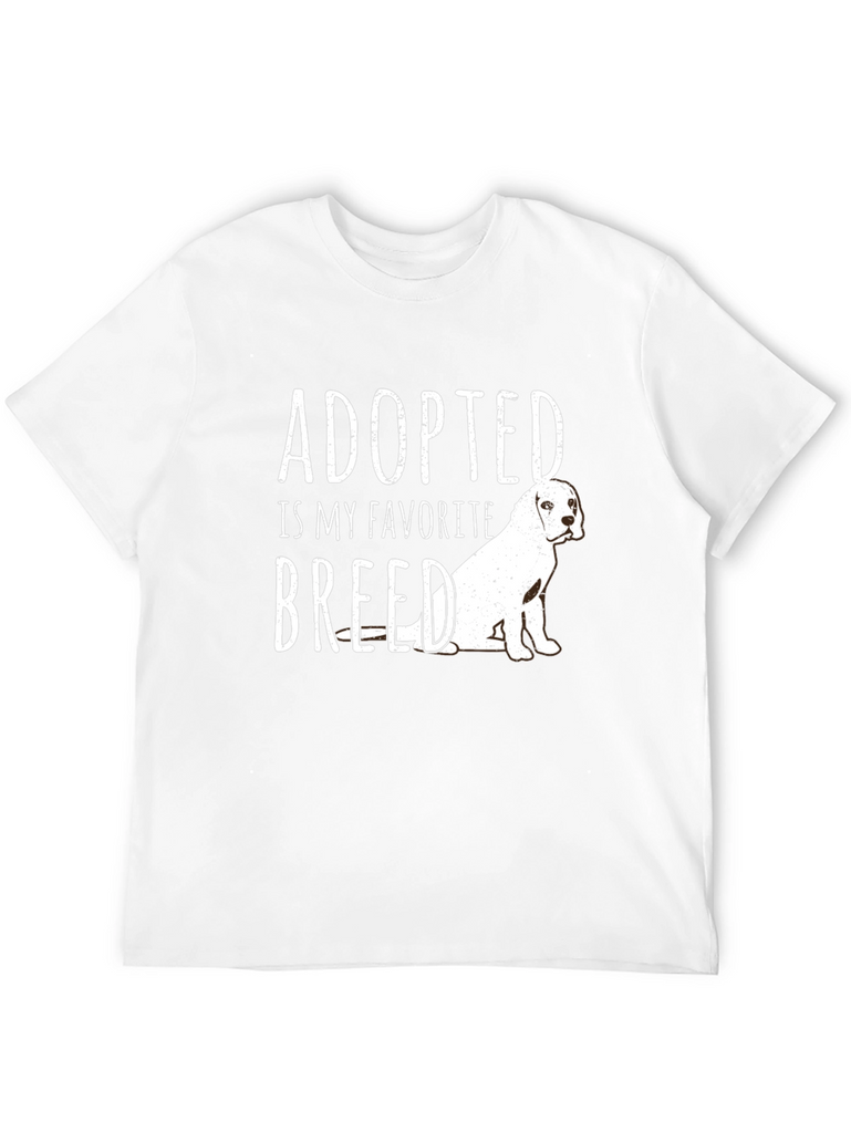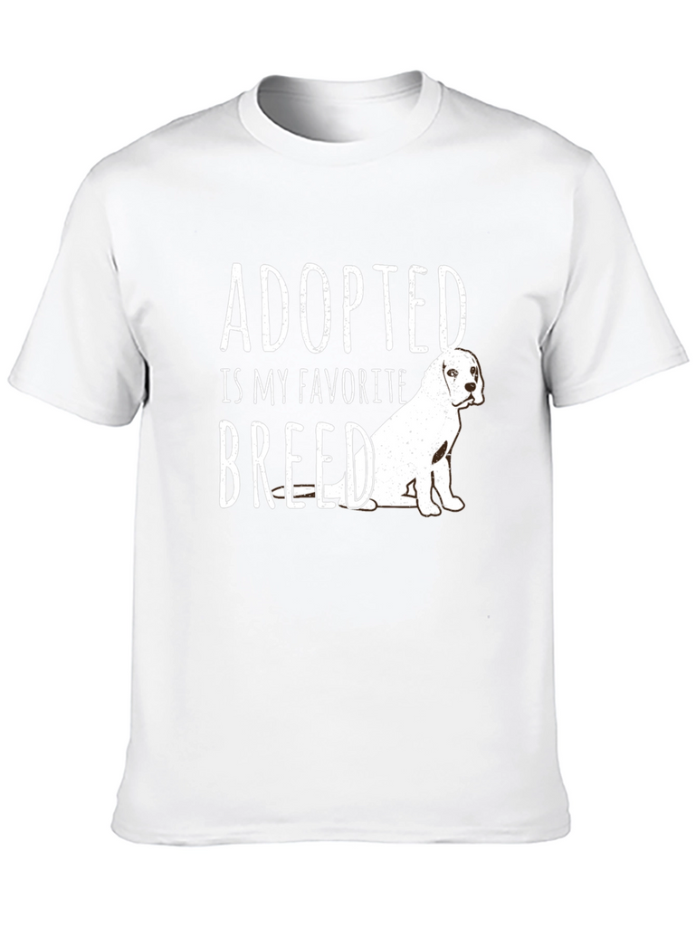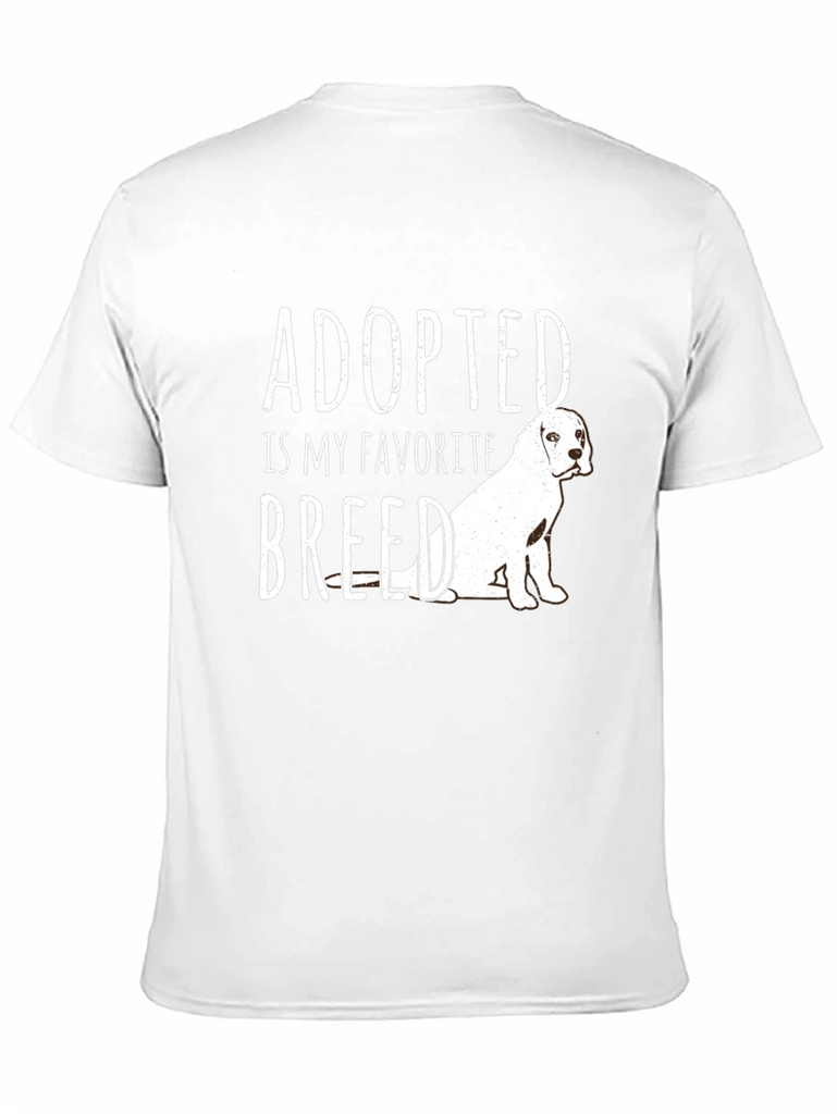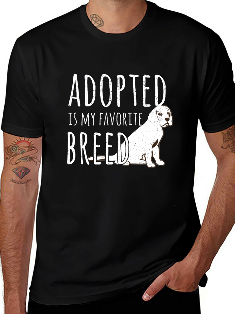 Show your love for rescued dogs with this stylish black t-shirt. It features the text "Adopted is my favorite breed" with an image of an adorable adopted dog. Made from a comfortable fabric, this shirt is perfect for everyday wear, dog walks, or showcasing your support for pet adoption. The classic fit and crew neck make it a versatile addition to any wardrobe. A great conversation starter for animal lovers and a perfect gift for dog rescuers and adopters. Wear it with pride and spread awareness about the wonderful benefits of adopting.
