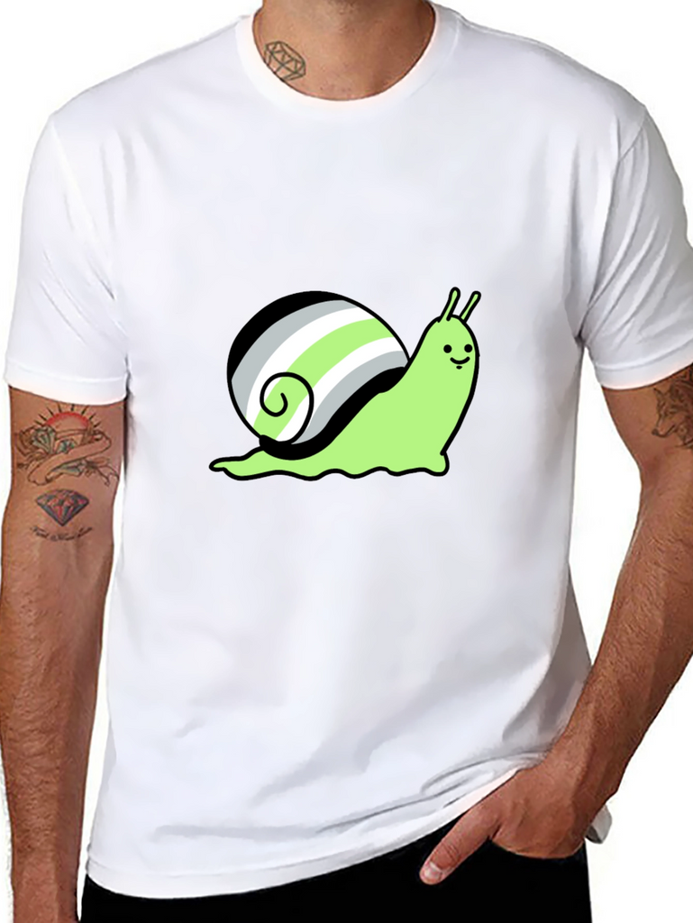 Show your agender pride with this unique t-shirt! The black tee features a charming cartoon snail graphic on the chest, displaying the agender flag colors in its shell. The snail's body is a soft green, adding a touch of whimsy to the design. Made from comfortable materials, this shirt is perfect for casual wear, pride events, or expressing your identity with style. Grab yours today and make a statement!