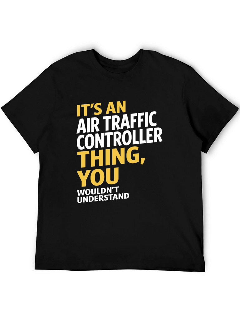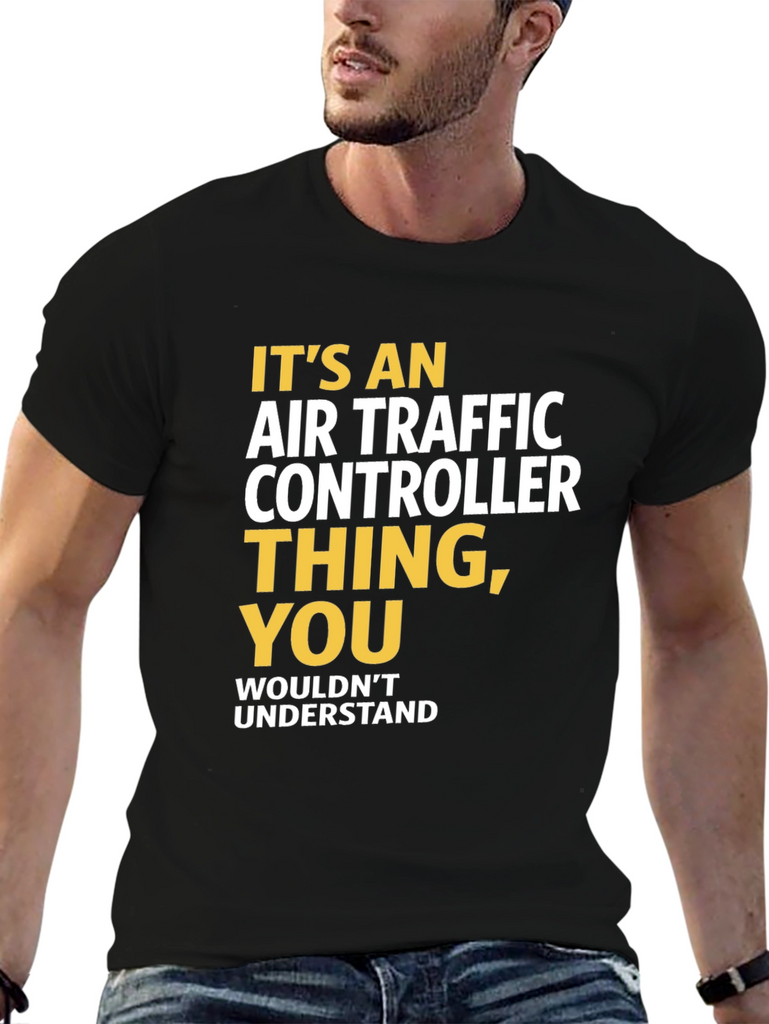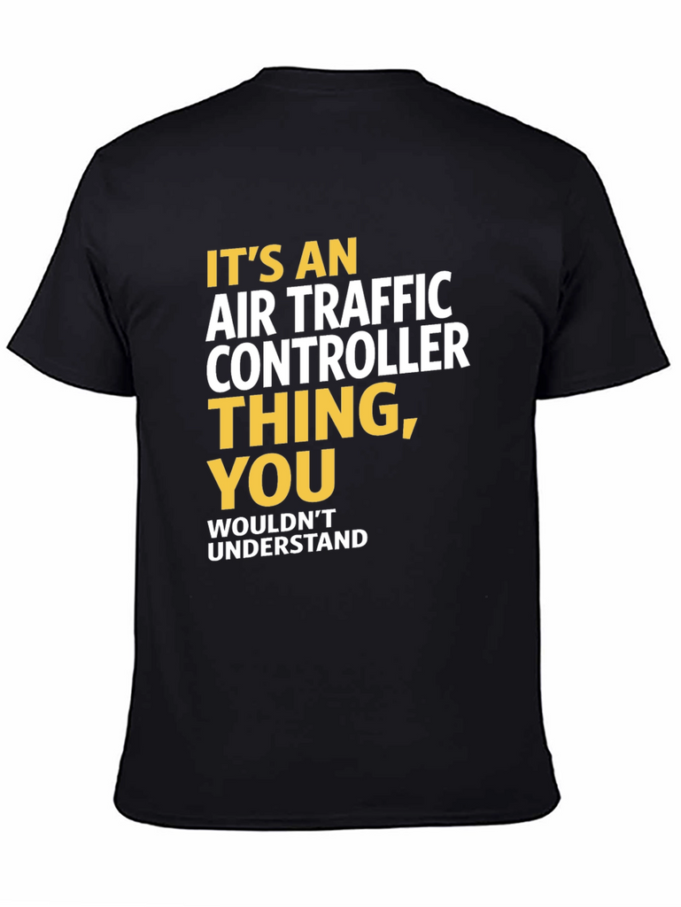 Show your pride in being an Air Traffic Controller with this stylish black T-shirt. The shirt features bold text in yellow and white stating, "It's an Air Traffic Controller Thing, You Wouldn't Understand". Made from comfortable fabric, this T-shirt is perfect for casual wear, aviation events, or as a gift for the dedicated air traffic controller in your life. Wear it with pride and let everyone know you're part of an elite group that keeps the skies safe! Order now and show the world your passion for air traffic control. This classic fit tee is a must-have for any aviation enthusiast.