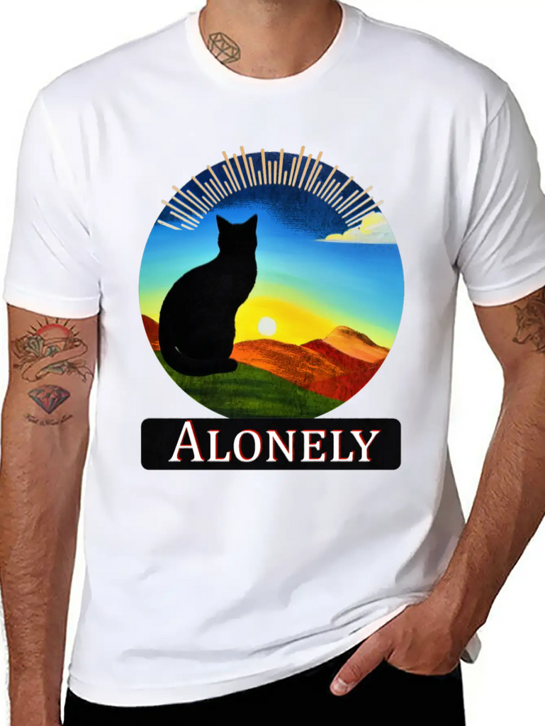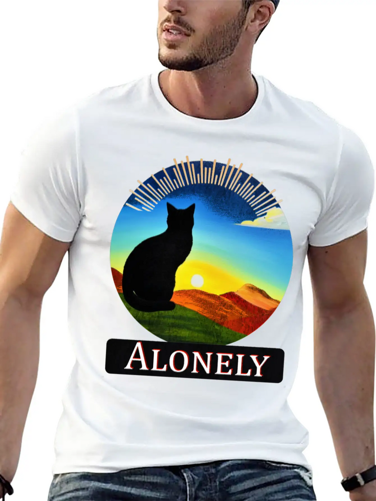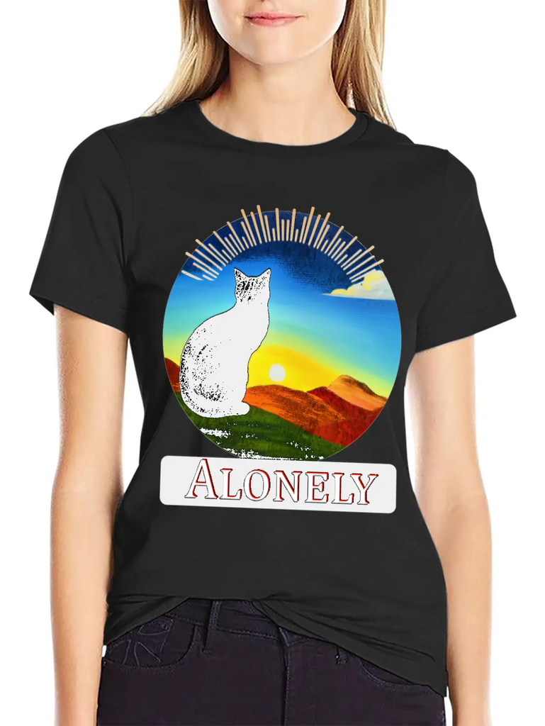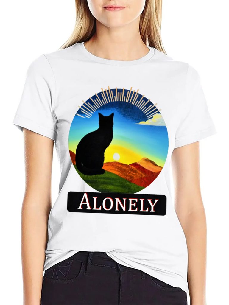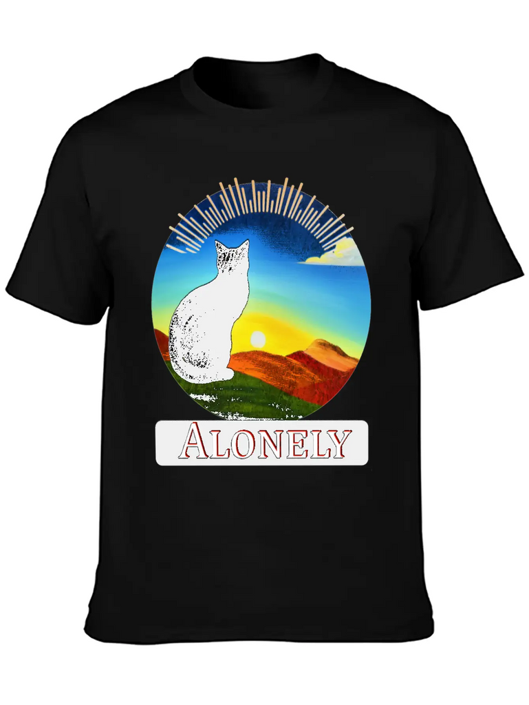 Simple, stylish, and themed with the Alonely cat t-shirt, this T-shirt is perfect for adding personality to your outfit. Soft cotton touch.