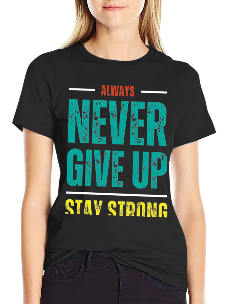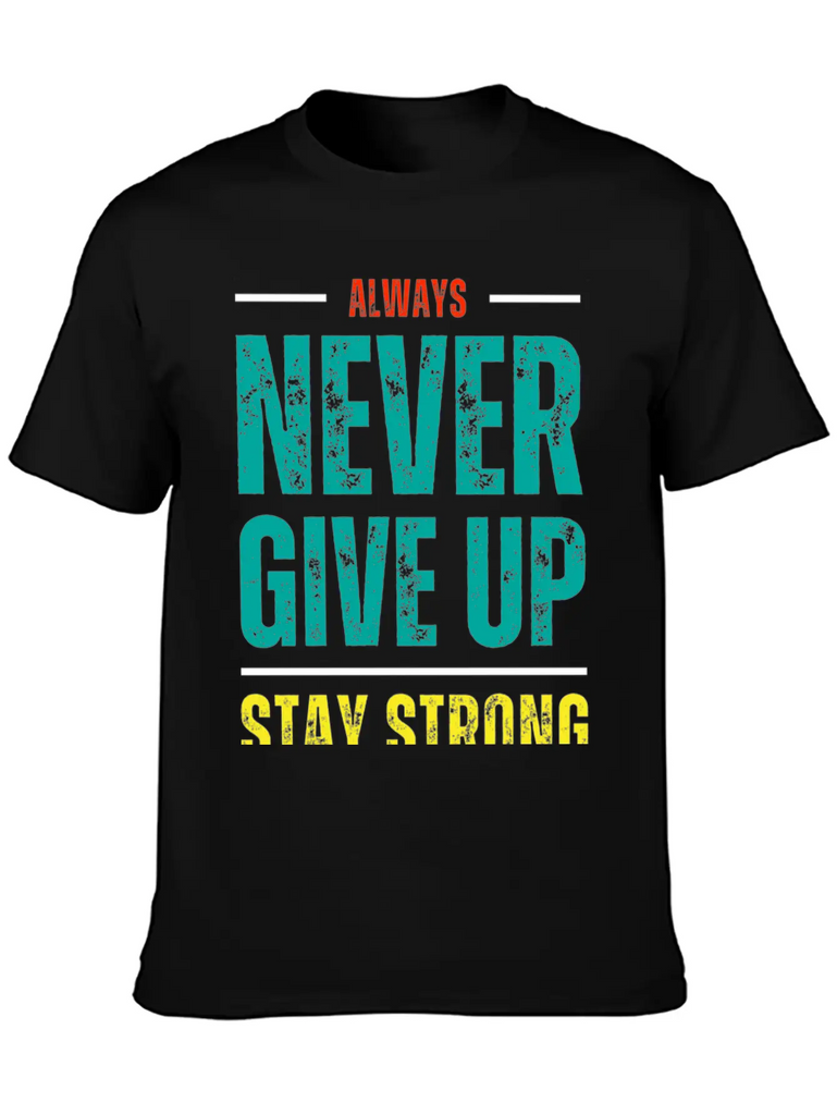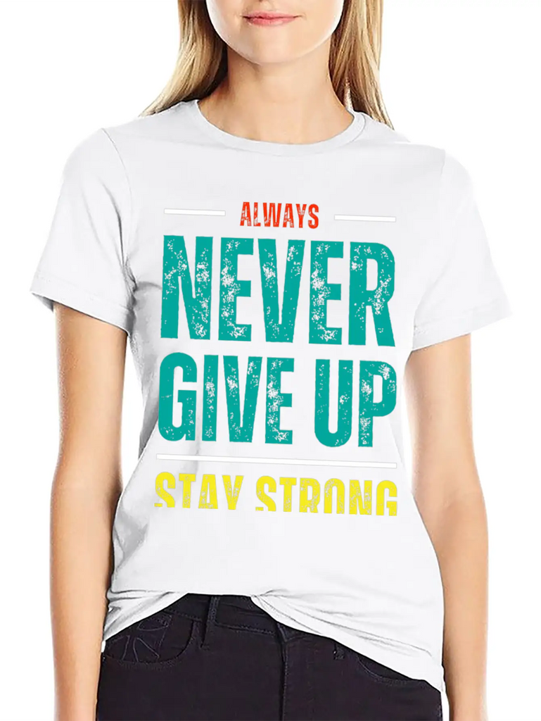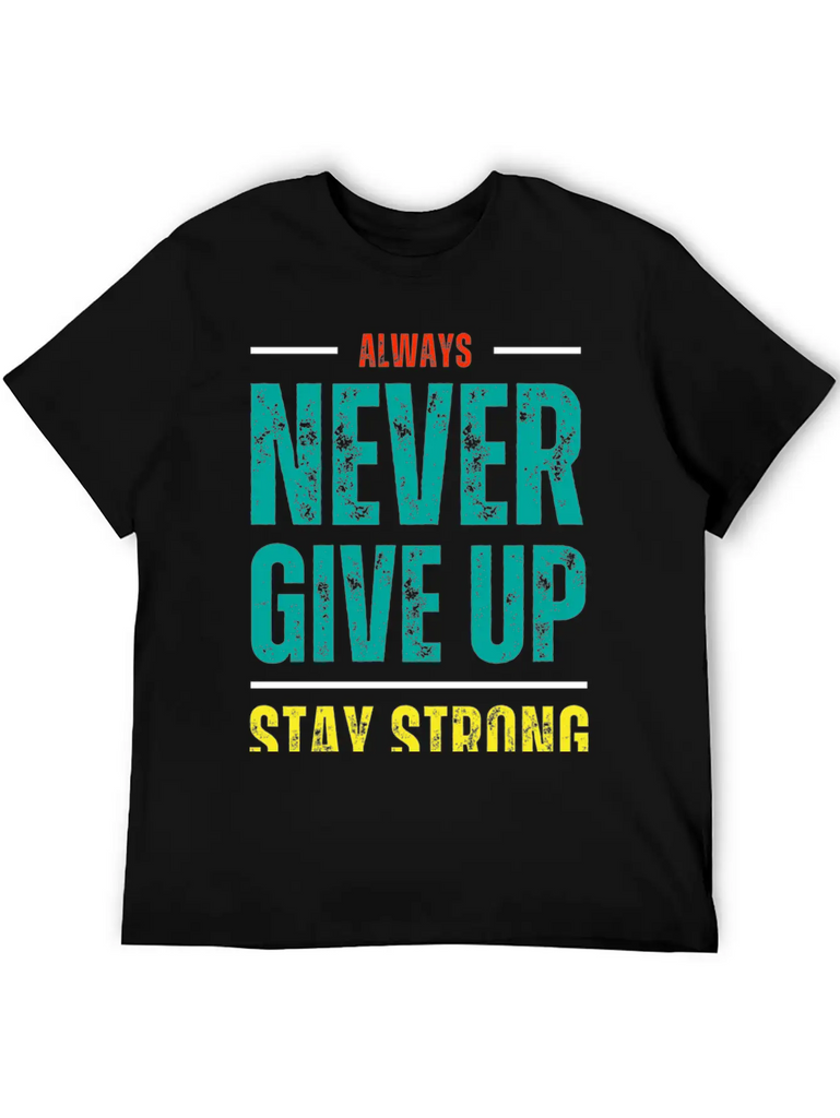Simple, stylish, and themed with the always never give up stay strong, this T-shirt is perfect for adding personality to your outfit. Soft cotton touch.