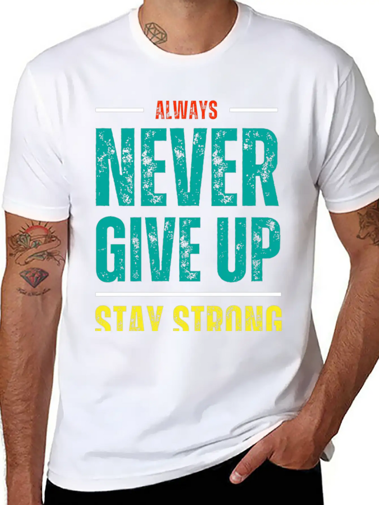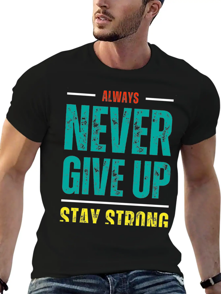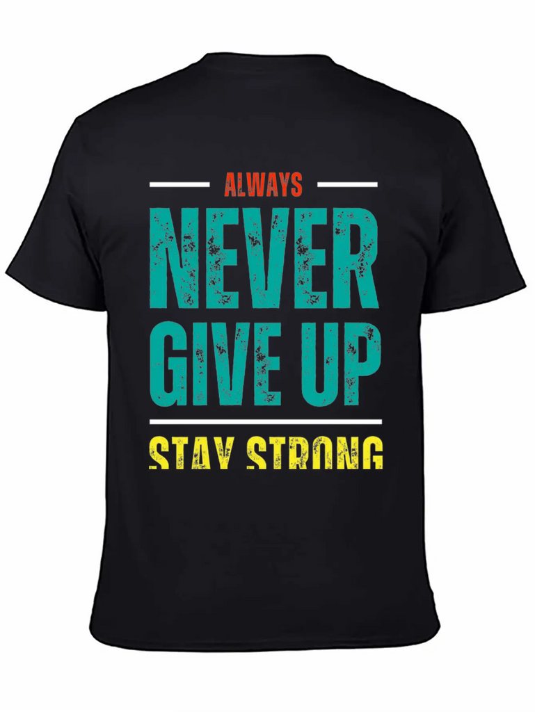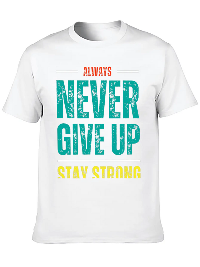 Simple, stylish, and themed with the always never give up stay strong, this T-shirt is perfect for adding personality to your outfit. Soft cotton touch.