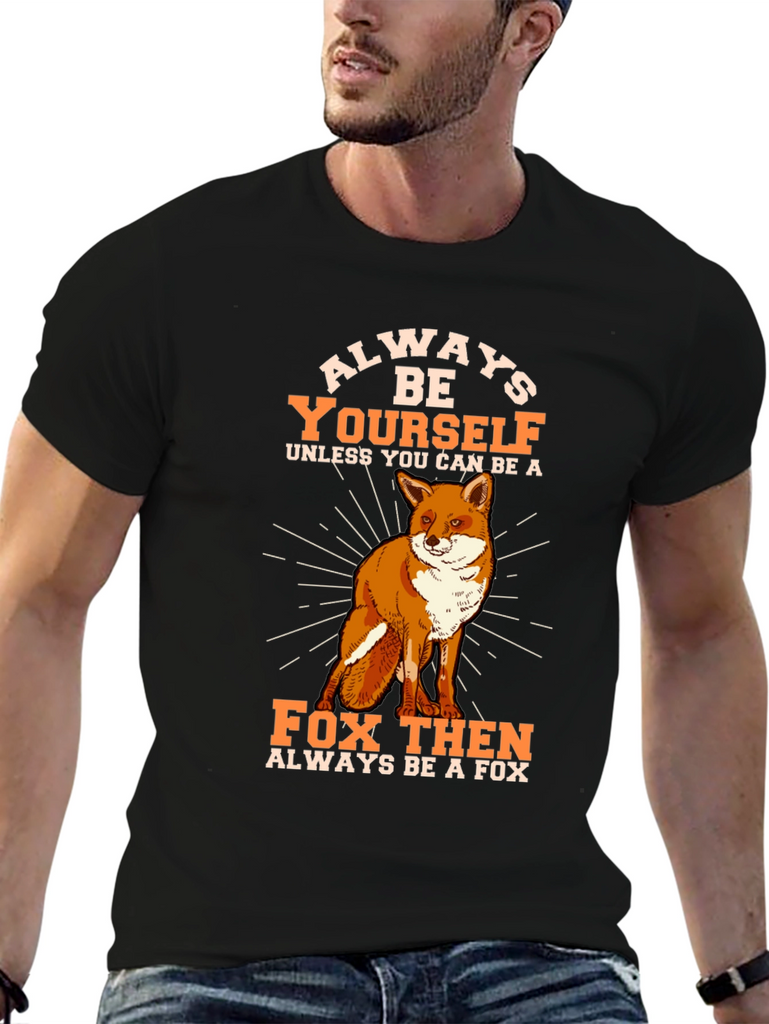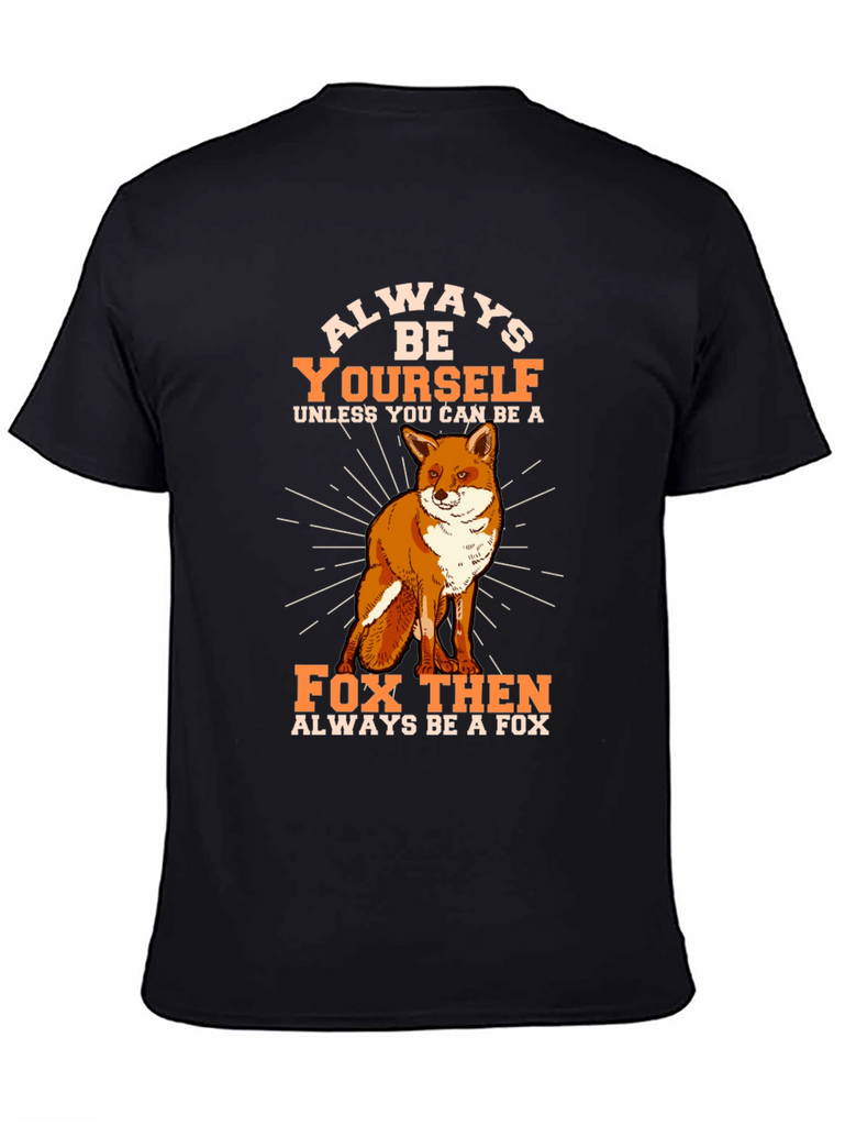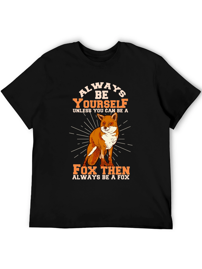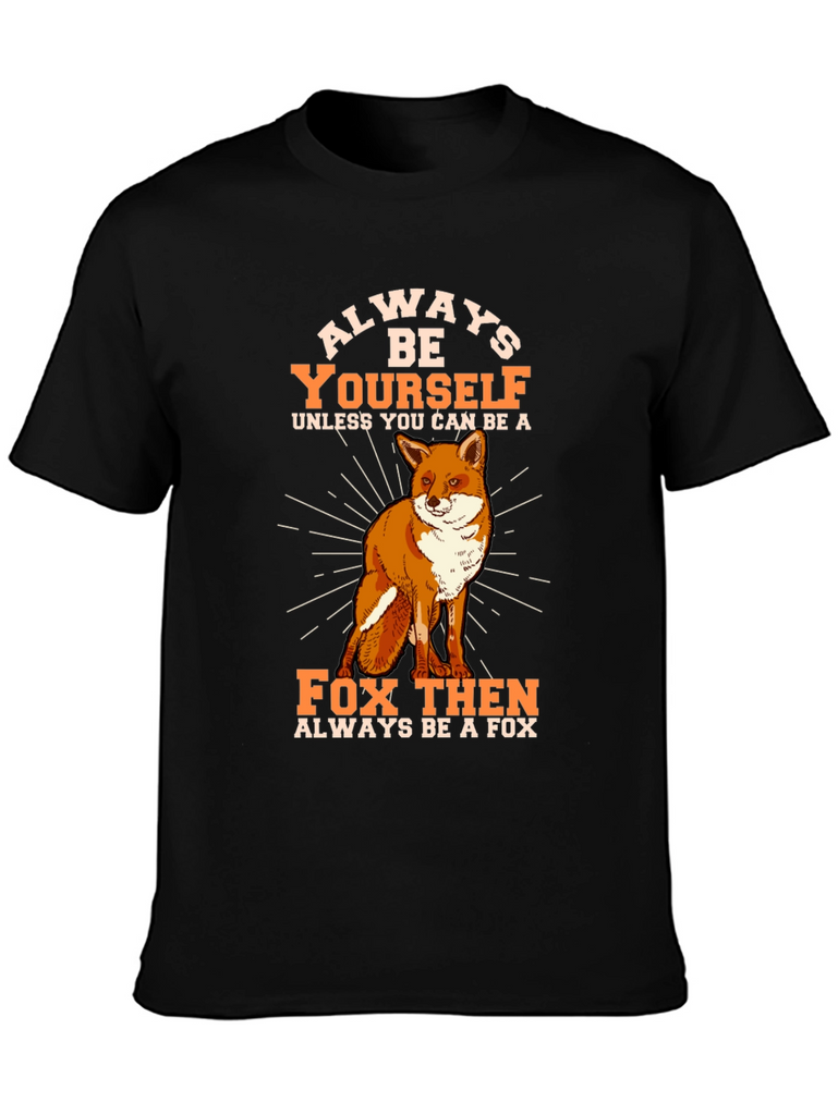 Embrace your inner fox with this unique graphic tee! Made from soft, breathable fabric, this black t-shirt features a bold design that reads "Always Be Yourself Unless You Can Be A Fox Then Always Be A Fox," complete with an eye-catching fox illustration. This tee is perfect for casual wear, making a statement, or showing off your love for wildlife. Pair it with jeans, shorts, or your favorite athleisure wear for an effortlessly cool look. Get ready to turn heads and spark conversations with this one-of-a-kind tee!