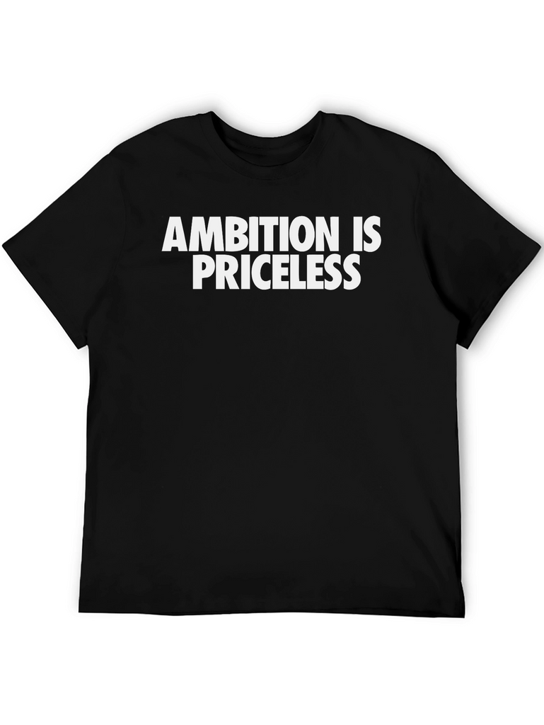Showcase your ambition with this bold, black graphic tee. Featuring the statement "Ambition is Priceless" in striking white font, this t-shirt is sure to turn heads. Made from a comfortable-looking fabric, it offers a relaxed fit for everyday wear. The classic crew neck and short sleeves make it a versatile addition to any wardrobe. Wear it to the gym, out with friends, or while pursuing your dreams. This t-shirt is not just a piece of clothing; it's a statement of intent.