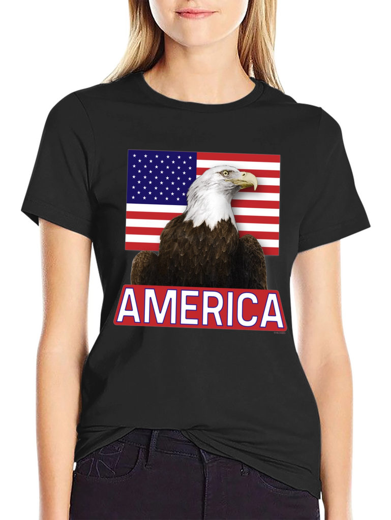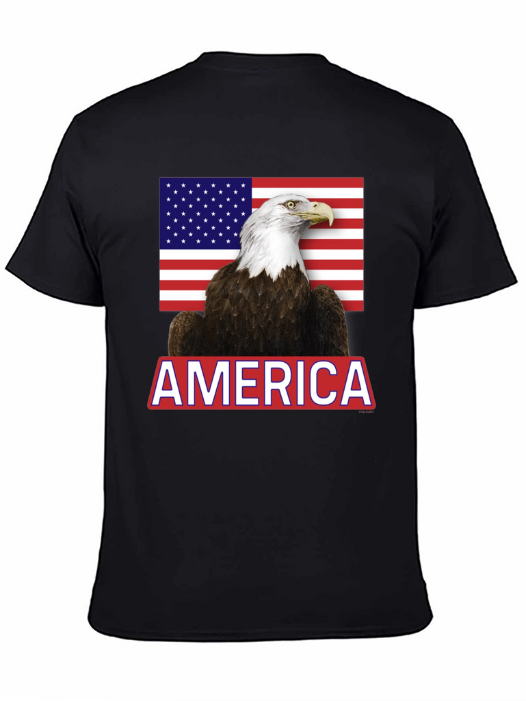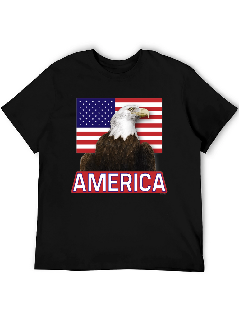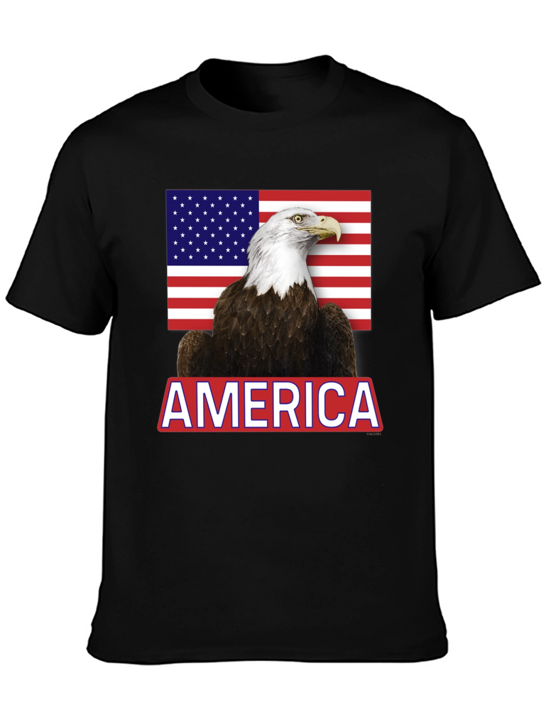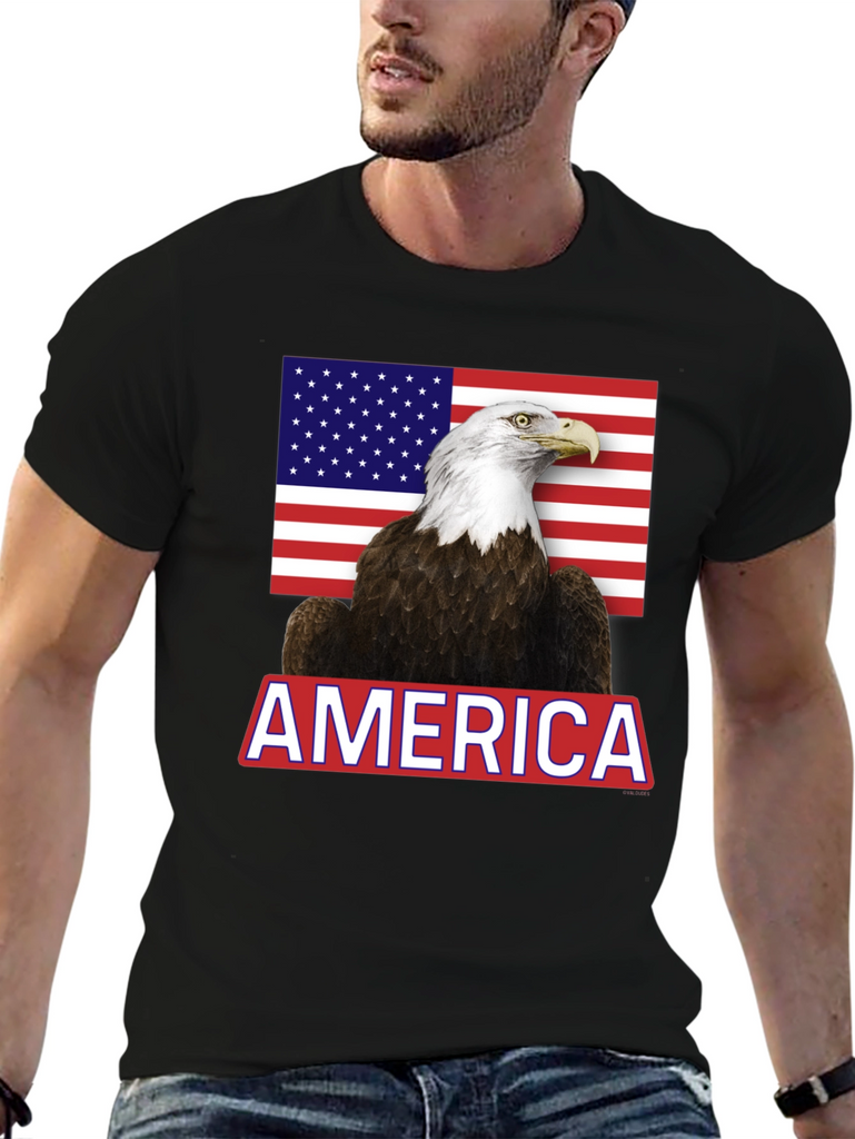 Show your patriotism with this striking black t-shirt! Featuring a bold graphic design of a majestic bald eagle superimposed over the American flag, it's a perfect way to express your love for the USA. The design includes the word "AMERICA" in a bold, eye-catching font, adding to the statement. Crafted from a comfortable, breathable fabric, this tee is ideal for casual wear, July 4th celebrations, or showing off your American pride any day of the year. Make a statement and add this unique piece to your wardrobe today!