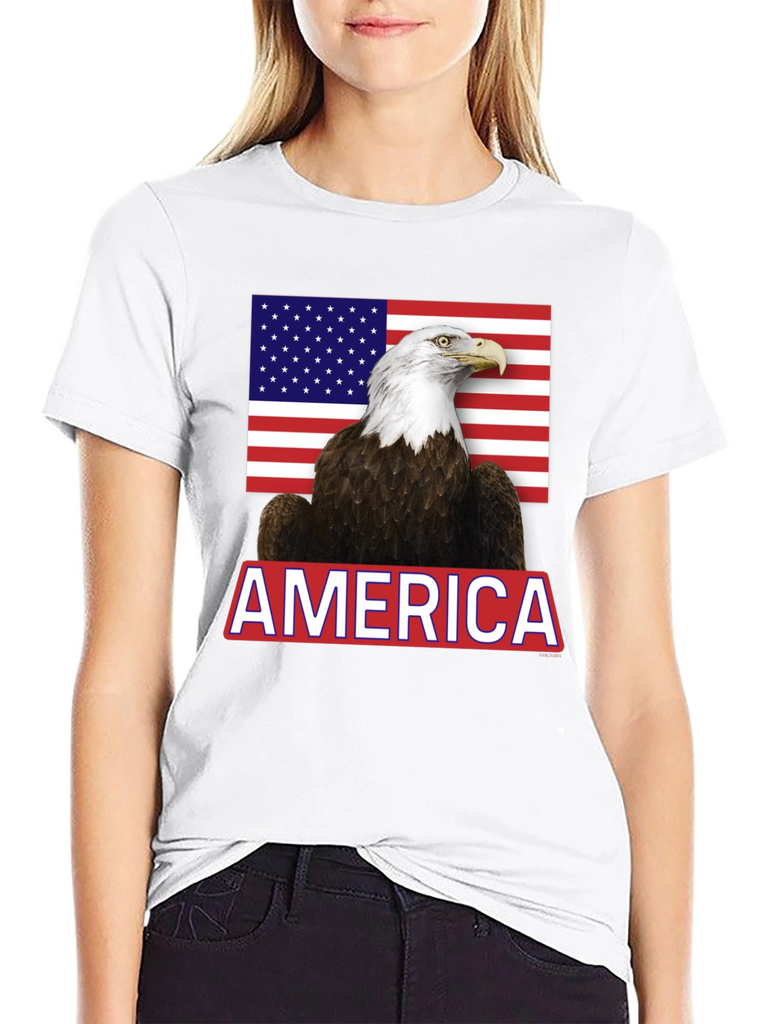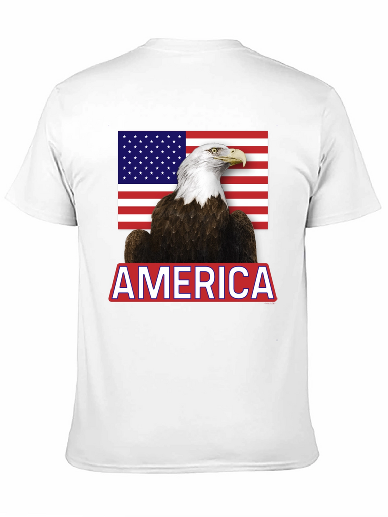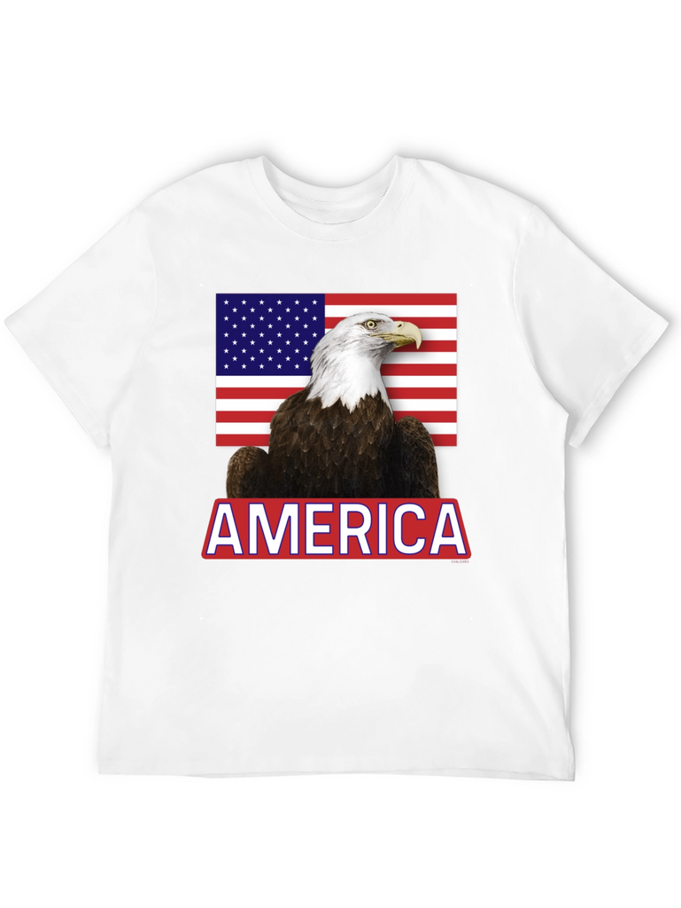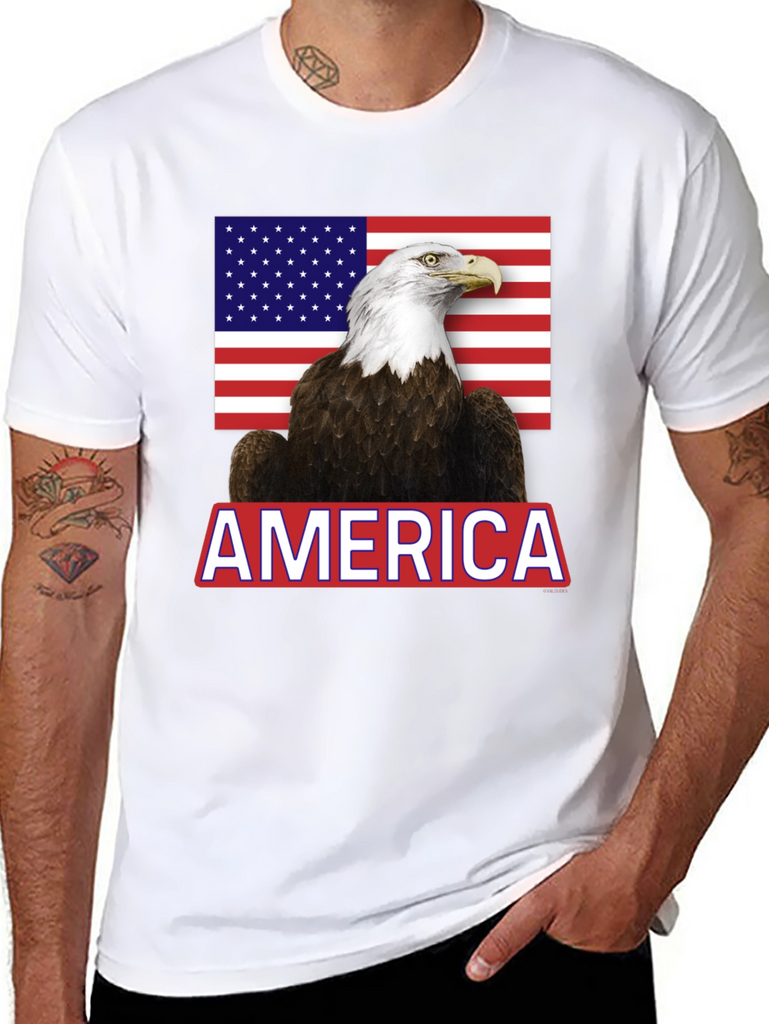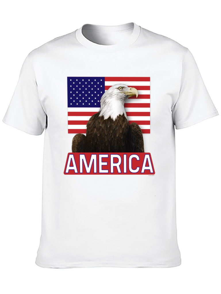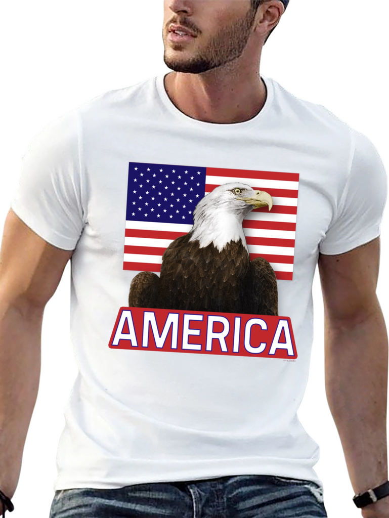 Show your patriotism with this striking black t-shirt! Featuring a bold graphic design of a majestic bald eagle superimposed over the American flag, it's a perfect way to express your love for the USA. The design includes the word "AMERICA" in a bold, eye-catching font, adding to the statement. Crafted from a comfortable, breathable fabric, this tee is ideal for casual wear, July 4th celebrations, or showing off your American pride any day of the year. Make a statement and add this unique piece to your wardrobe today!