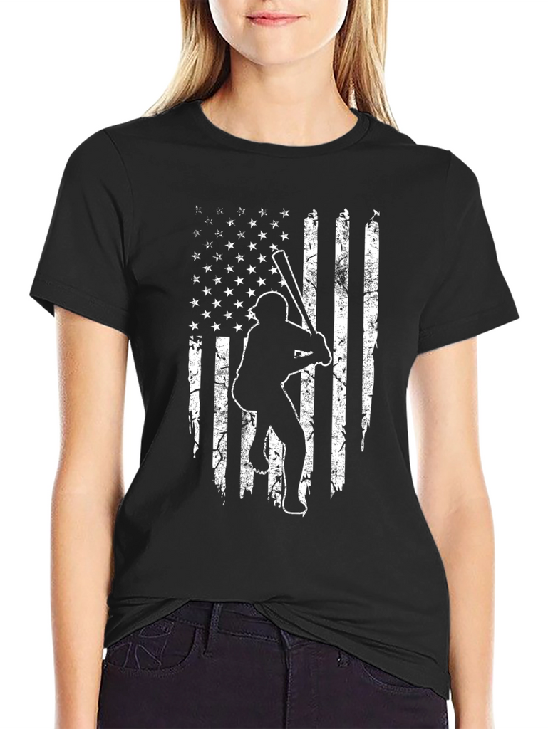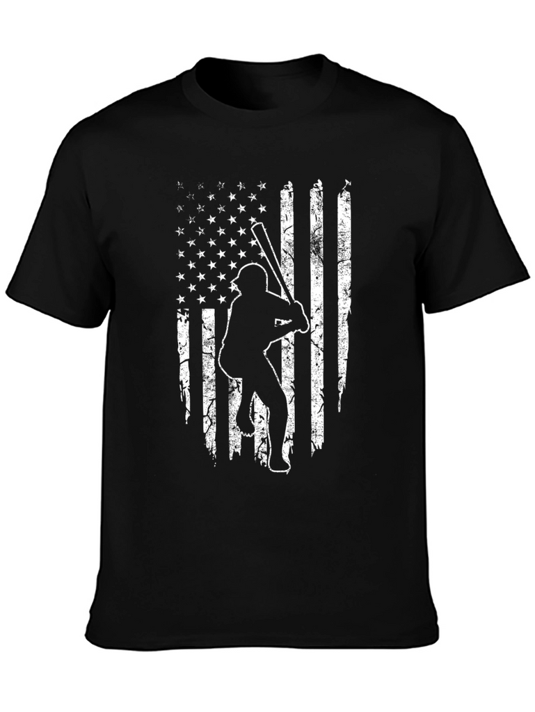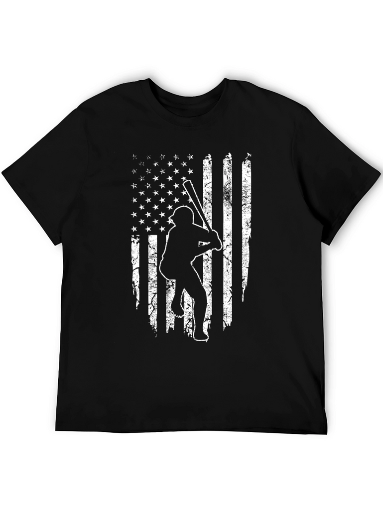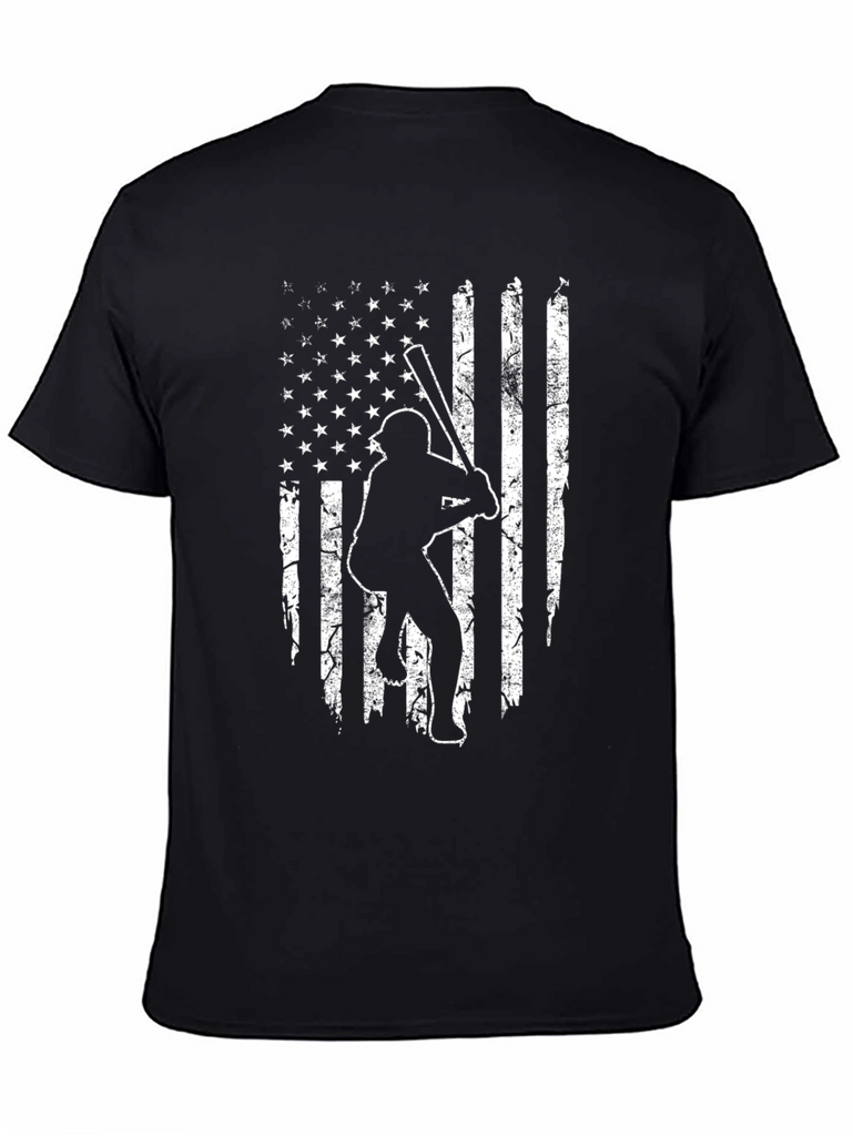 Show your love for baseball and the USA with this unique t-shirt. Made from comfortable, dark-colored fabric, this shirt features a distressed American flag design with a baseball player silhouette. Perfect for game days, sporting events, or casual wear, this tee combines patriotism with a passion for sports. A great gift for baseball fans and anyone who loves the stars and stripes!