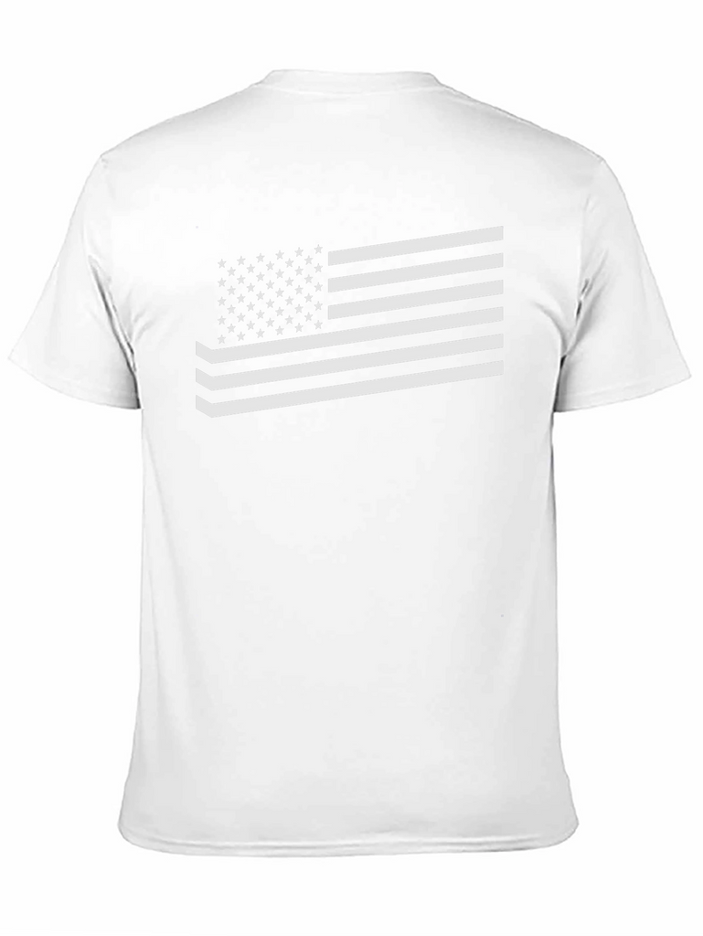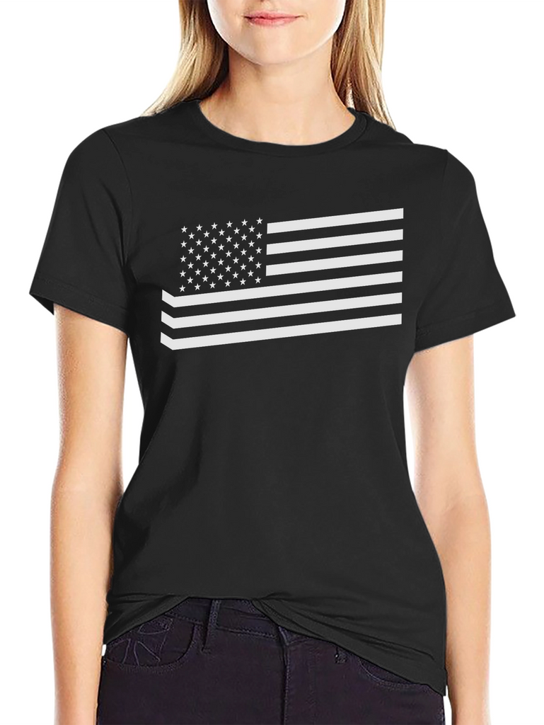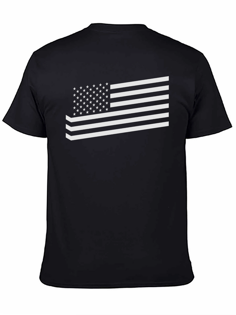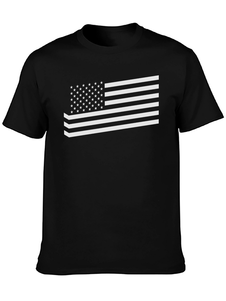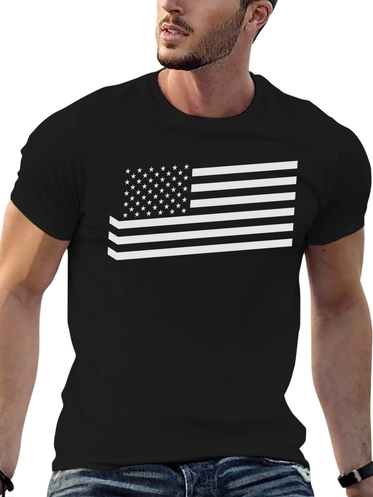 Show off your American pride with this stylish black t-shirt featuring a bold, white American flag graphic. The design incorporates stars and stripes for a classic patriotic look with a modern twist. Made from a comfortable, breathable fabric, this tee is perfect for everyday wear, casual outings, or showing your support at national events. Its versatile design makes it easy to pair with jeans, shorts, or khakis. Stand out from the crowd with this eye-catching t-shirt that combines comfort, style, and patriotic spirit. A perfect gift for those who love the USA!