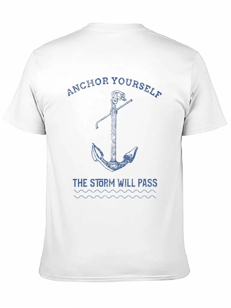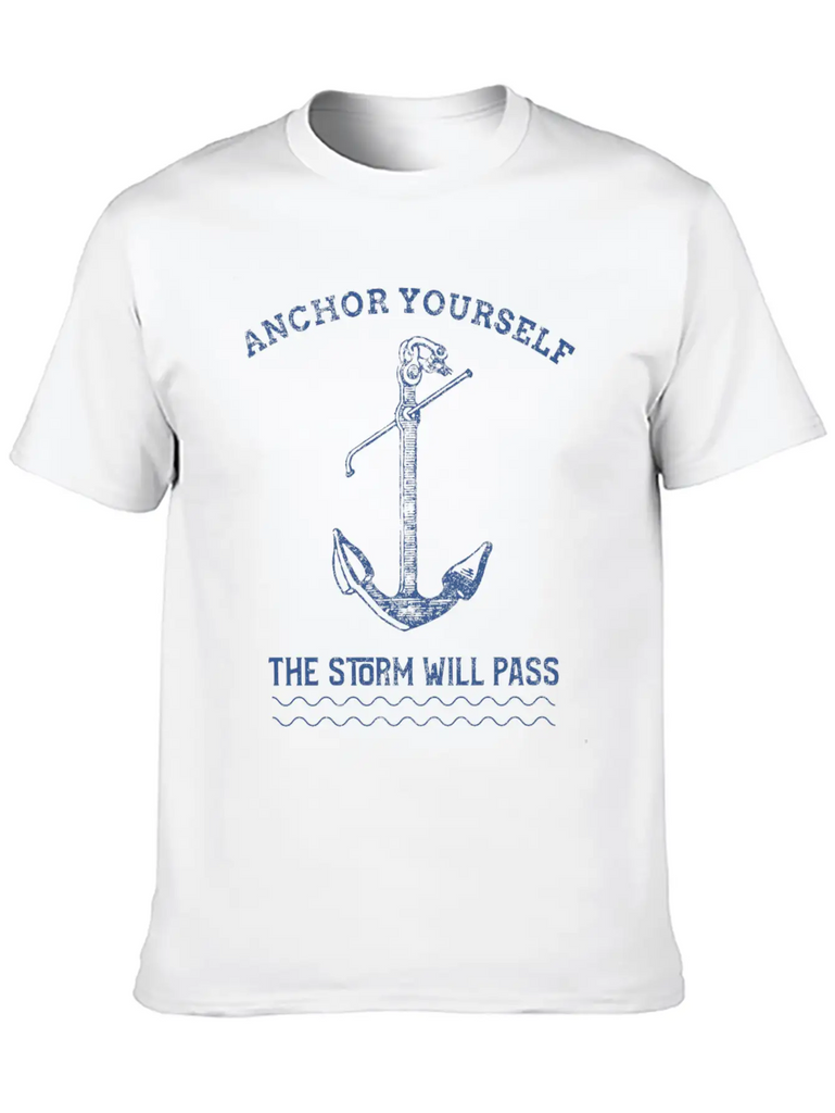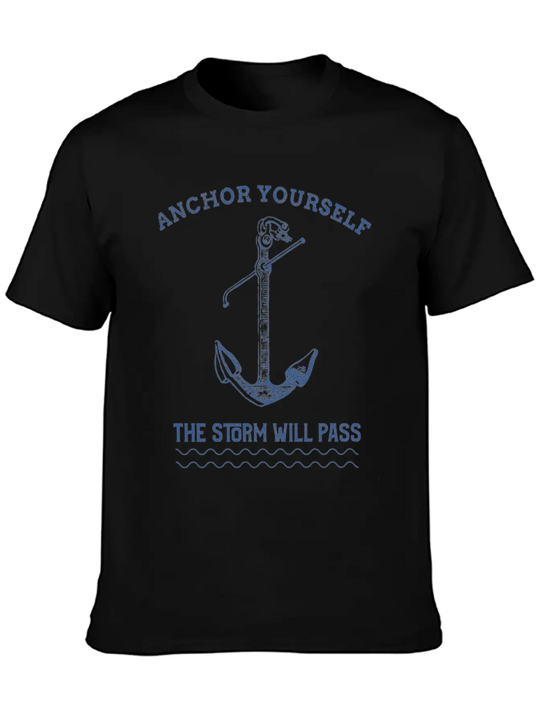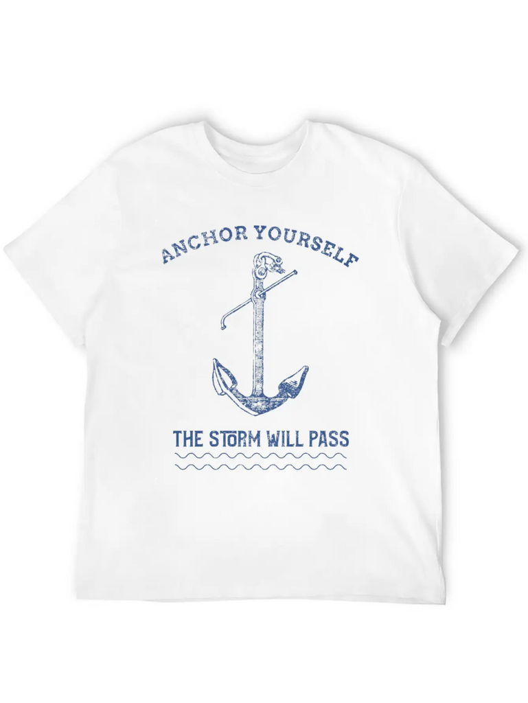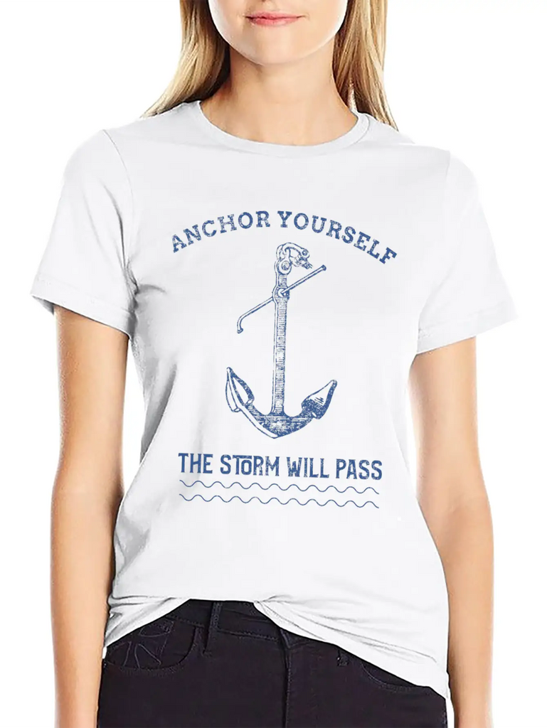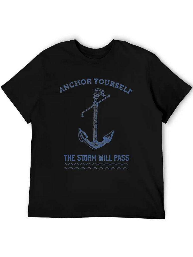 Add a hint of Anchor Yourself The Storm Will Pass to your wardrobe with this minimalist graphic tee. Lightweight and perfect for all seasons.