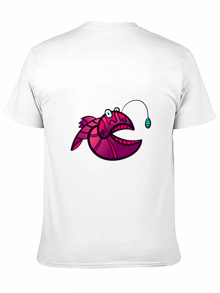 Show off your unique style with this eye-catching graphic tee! This black t-shirt features a bold and vibrant angler fish design in shades of pink and purple. The cartoonish style adds a playful touch, while the striking colors ensure you'll stand out from the crowd. Made from comfortable materials, this tee is perfect for casual wear. Dress it up with jeans or keep it relaxed with shorts – either way, you'll make a statement. It's an ideal choice for anyone who loves marine life or wants to add a bit of fun to their wardrobe. Get yours today and express your individuality!