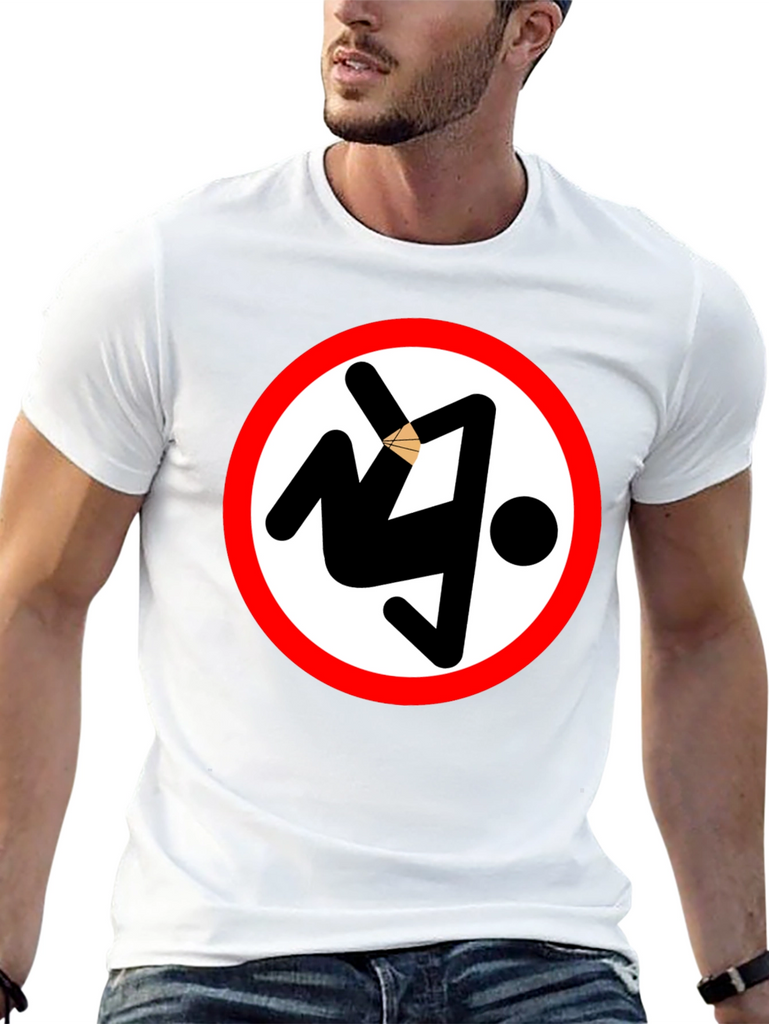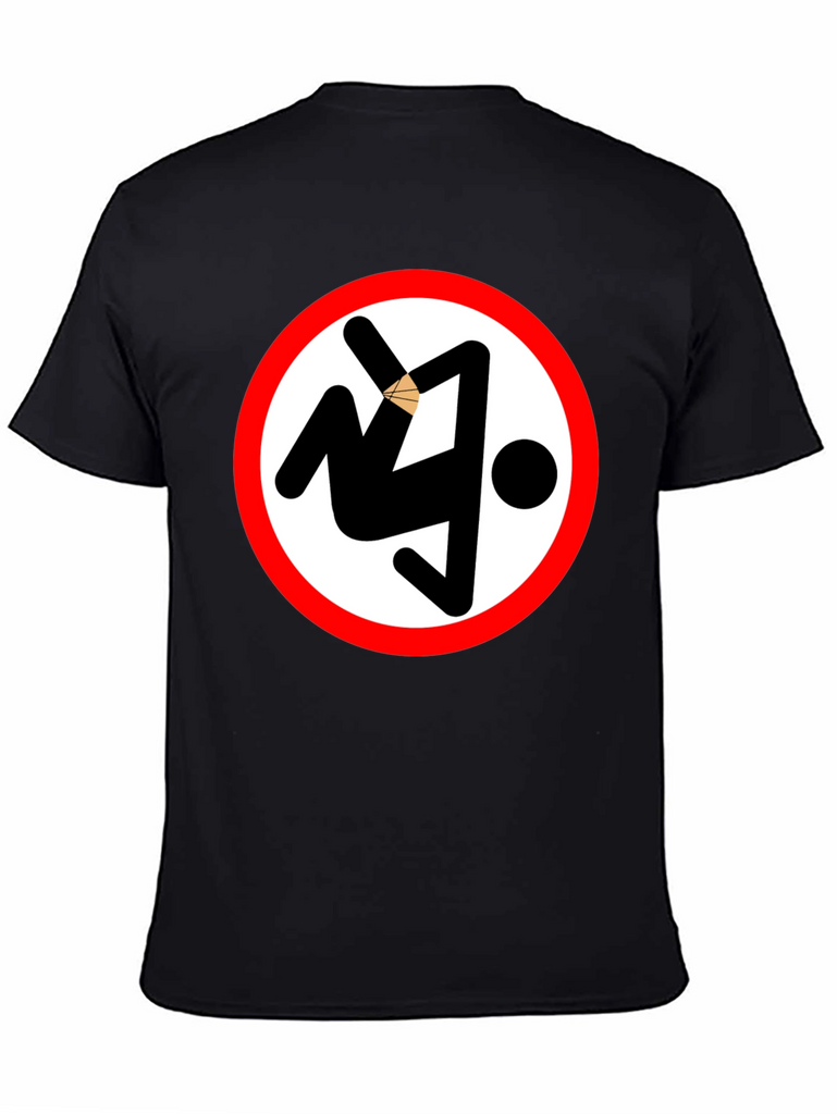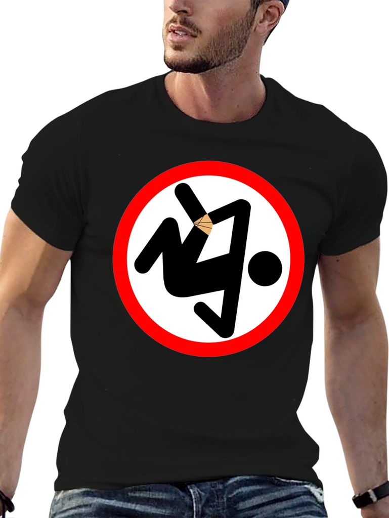Show off your unique style with this eye-catching black t-shirt featuring a bold anti-woke design. The central graphic displays a stylized figure seemingly defying gravity inside a red and white circle, making a statement. Crafted from a soft, comfortable fabric, this tee is perfect for everyday wear, casual outings, or expressing your individual viewpoint. Ideal for those who appreciate edgy, unconventional graphics. Get ready to turn heads and spark conversations with this standout t-shirt!