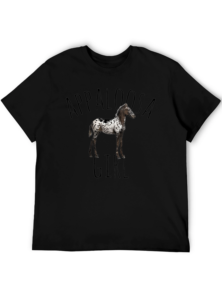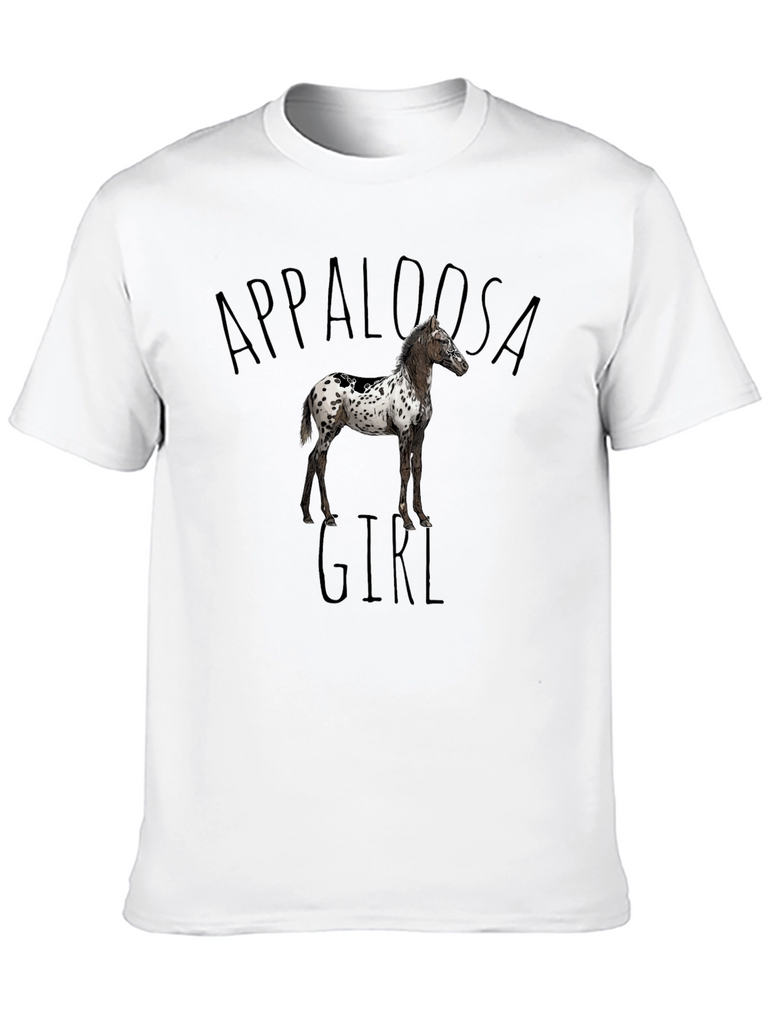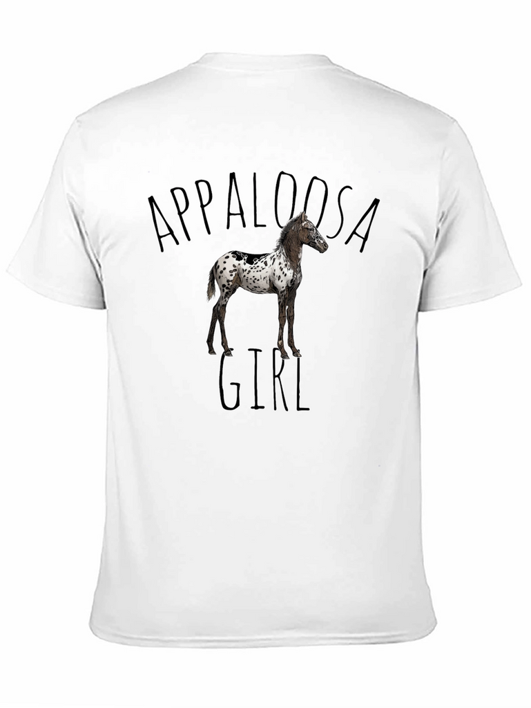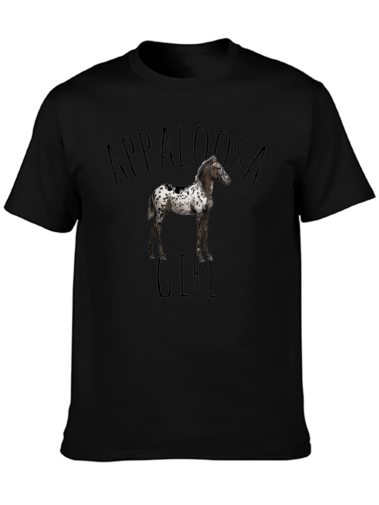 Show your love for Appaloosa horses with this stylish black T-shirt. Featuring a striking image of an Appaloosa horse foal in a unique print with the words "Appaloosa Girl", this tee is perfect for equestrians and horse lovers alike. The shirt is made from a comfortable, soft fabric that feels great against the skin. Wear it casually with jeans or dress it up with a skirt for a fun and trendy look. This shirt makes a great gift for birthdays, holidays, or any occasion for the Appaloosa obsessed.