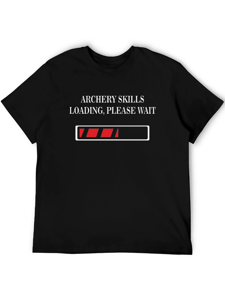 Showcase your passion for archery with this unique graphic t-shirt. The shirt features a playful "Archery Skills Loading, Please Wait" design with a loading bar graphic. Made from comfortable, breathable fabric, this tee is perfect for casual wear, archery practice, or competitions. Its eye-catching design is sure to be a conversation starter among fellow archery enthusiasts. This tee is a must-have for any archer with a sense of humor. Get yours now and let everyone know your archery skills are in progress!