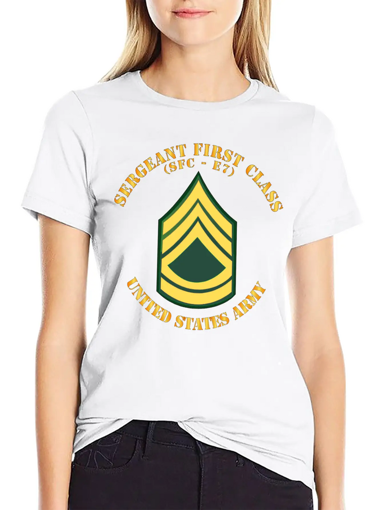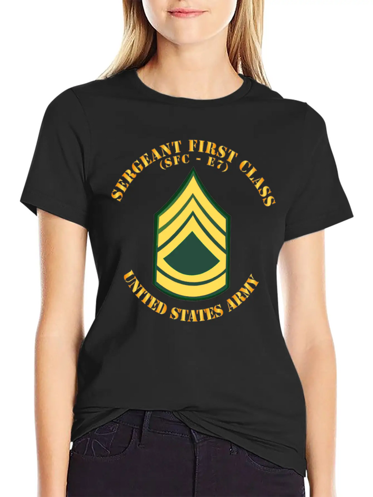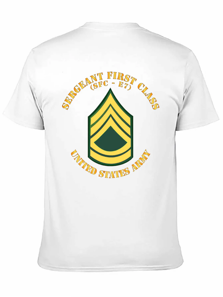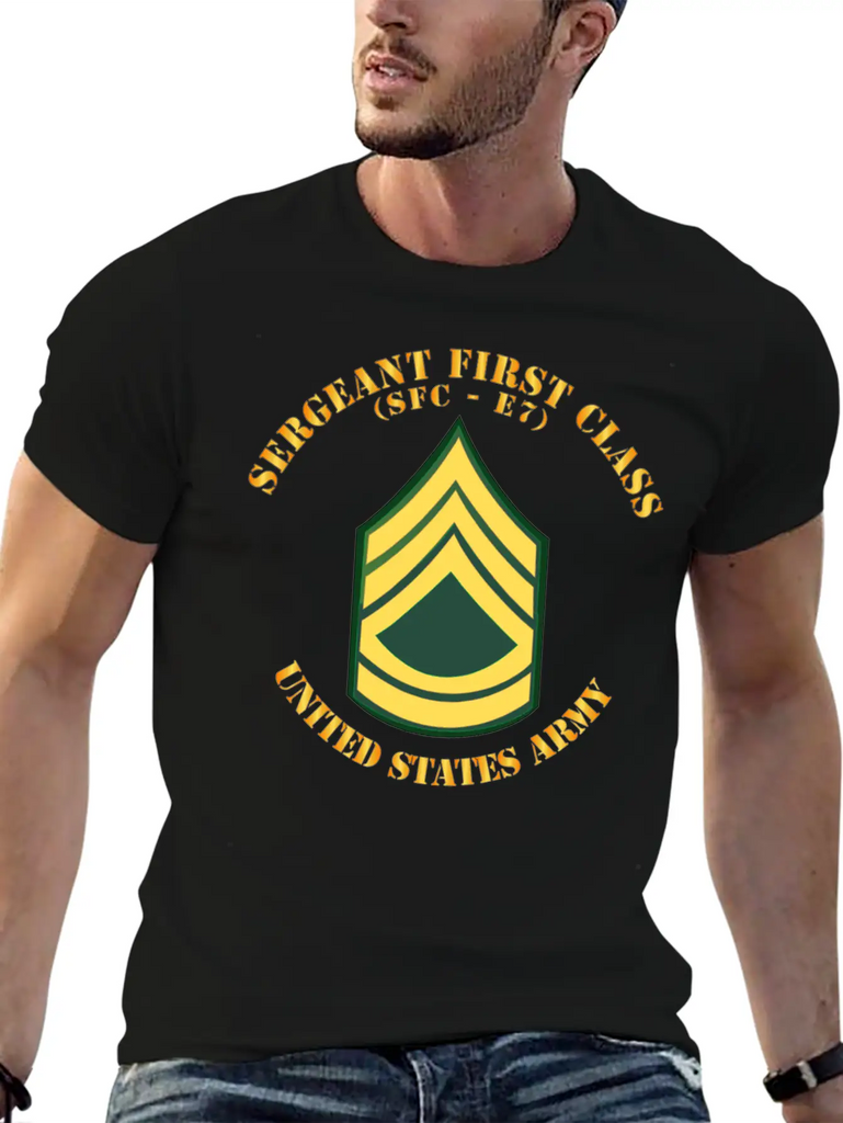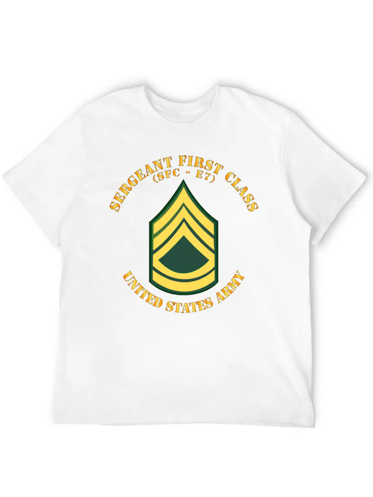 The Army Sergeant First Class SFC E7 design adds character to this everyday tee. Easy to pair with jeans, shorts, or layered looks.