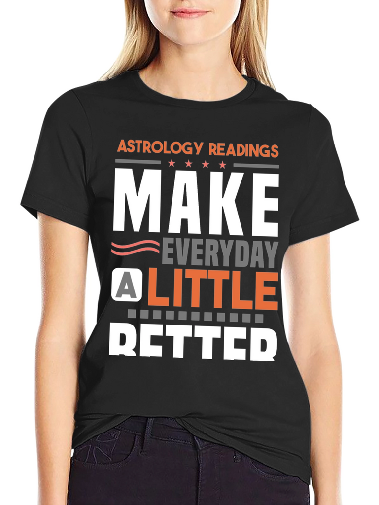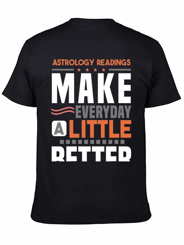 Elevate your everyday style with this unique astrology-themed t-shirt! Featuring a bold design with the uplifting message "Make Everyday A Little Better," this tee is sure to turn heads and spread positive vibes. The shirt has a black color. Perfect for casual wear, astrology enthusiasts, or anyone looking to add a touch of inspiration to their wardrobe. Made from comfortable, breathable fabric for all-day wear. Get yours today and start making every day a little better!