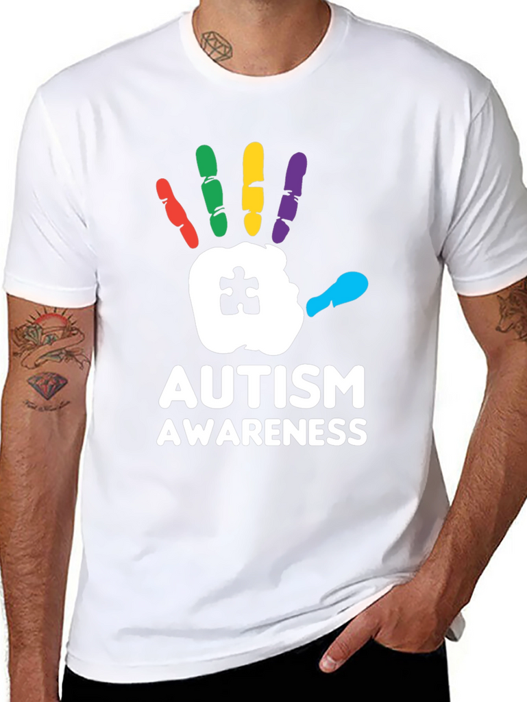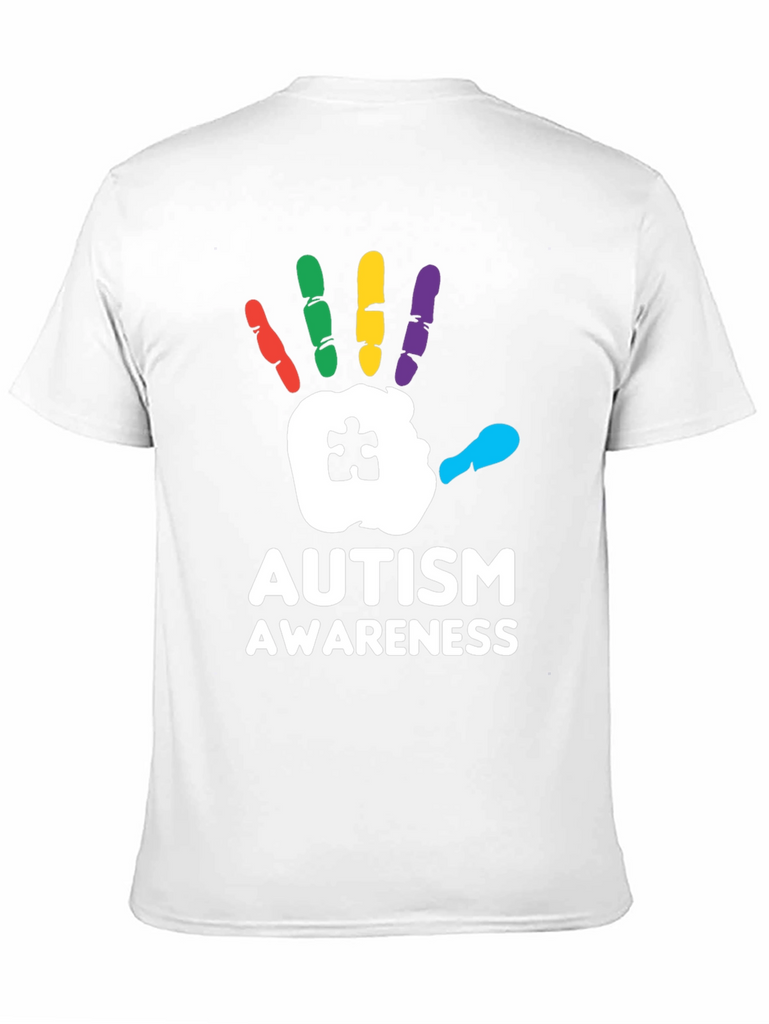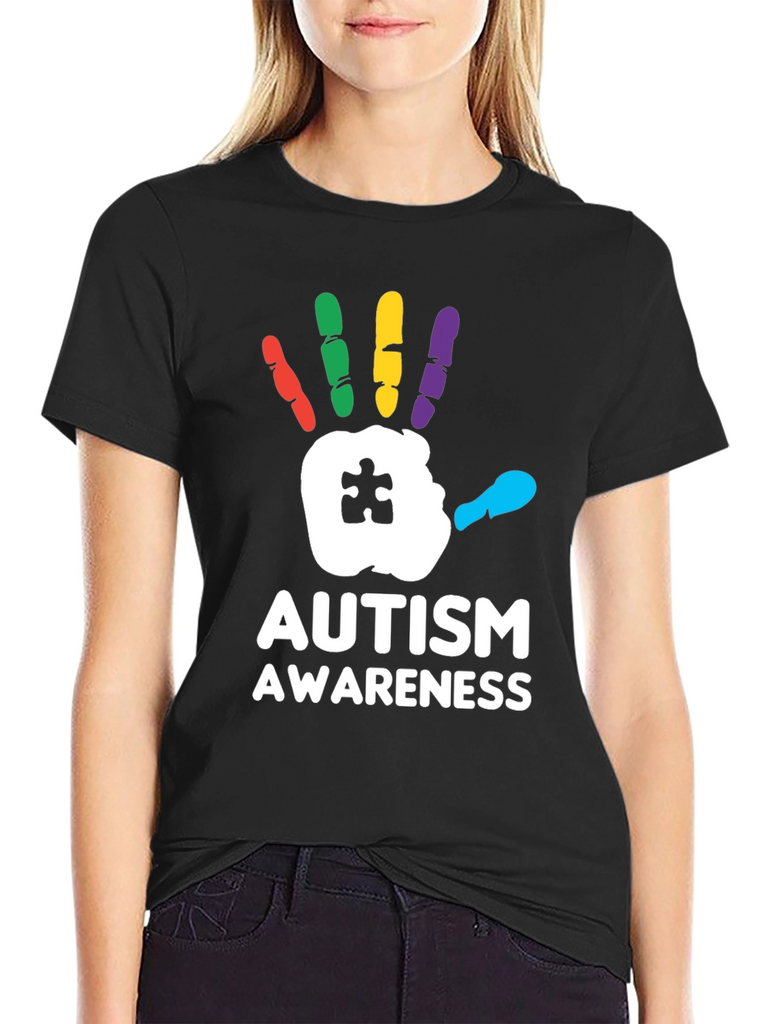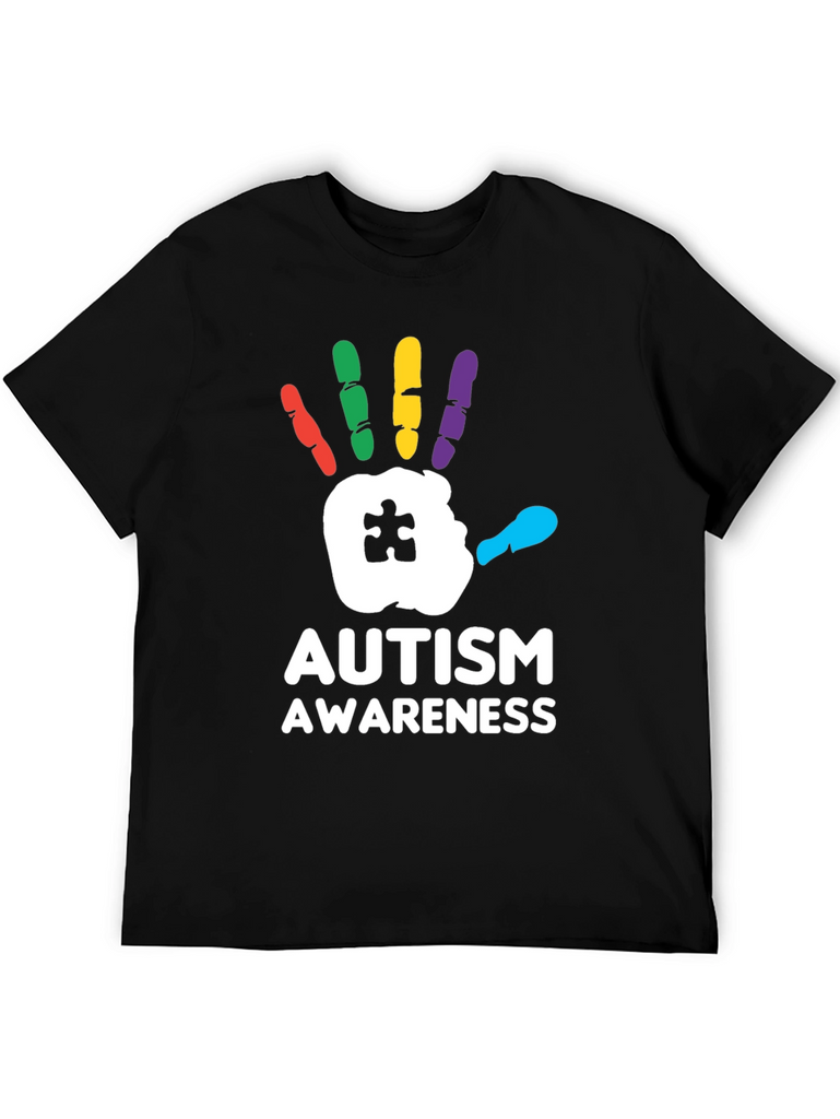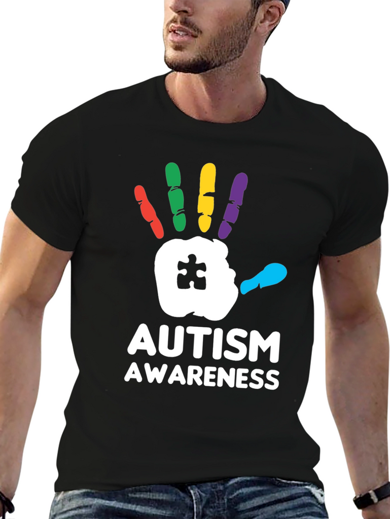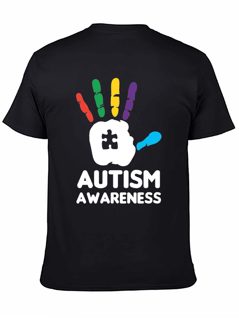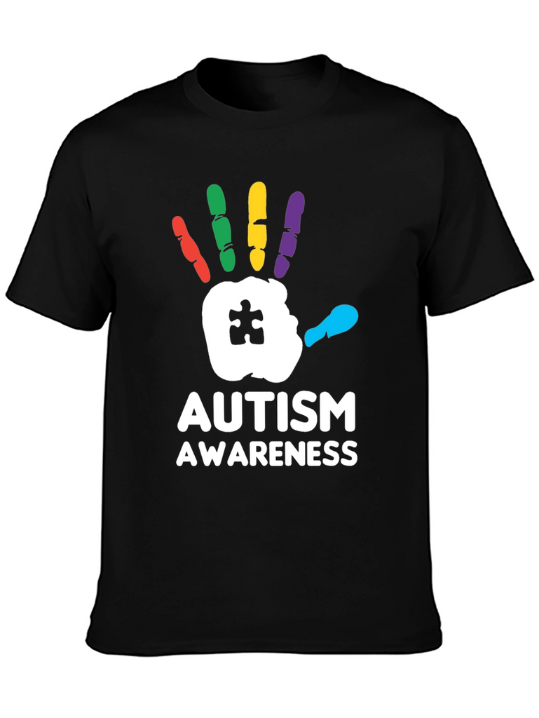 Show your support with this striking Autism Awareness T-Shirt! Featuring a bold, colorful handprint design with a puzzle piece detail, this tee is perfect for spreading awareness and starting conversations. The handprint is rendered with red, green, yellow, purple and cyan fingers. Made from a comfortable black fabric, this shirt is ideal for everyday wear, autism walks, charity events, or simply showing your support for the autism community. Let your clothing make a statement with this meaningful and eye-catching design.