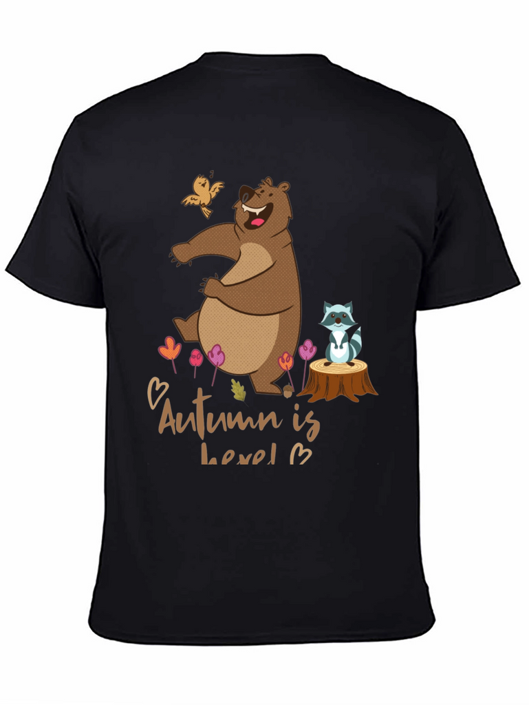 Show off your love for autumn with this fun and whimsical graphic t-shirt! Featuring a playful cartoon bear, bird, and raccoon amidst fall foliage, this tee brings a touch of nature-inspired charm to your wardrobe. The design includes the catchy phrase "Autumn is level 13", adding a unique and playful twist. Made from a comfortable, breathable fabric, this t-shirt is perfect for casual outings, cozy days at home, or as a quirky gift for the fall enthusiast in your life. Pair it with jeans or leggings for an effortlessly stylish look!