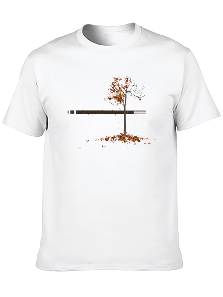 Embrace the essence of autumn with this stylish black t-shirt. Featuring a captivating graphic of a solitary tree with vibrant orange and brown leaves, it evokes a sense of seasonal charm. The horizontal line adds a modern touch. Crafted from soft, breathable fabric, this tee ensures all-day comfort. Perfect for casual outings, layering under jackets, or simply expressing your love for nature's beauty. This versatile t-shirt is a must-have addition to any wardrobe. Let the colors of fall inspire your style!