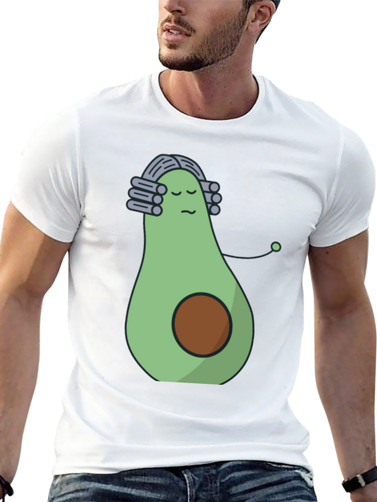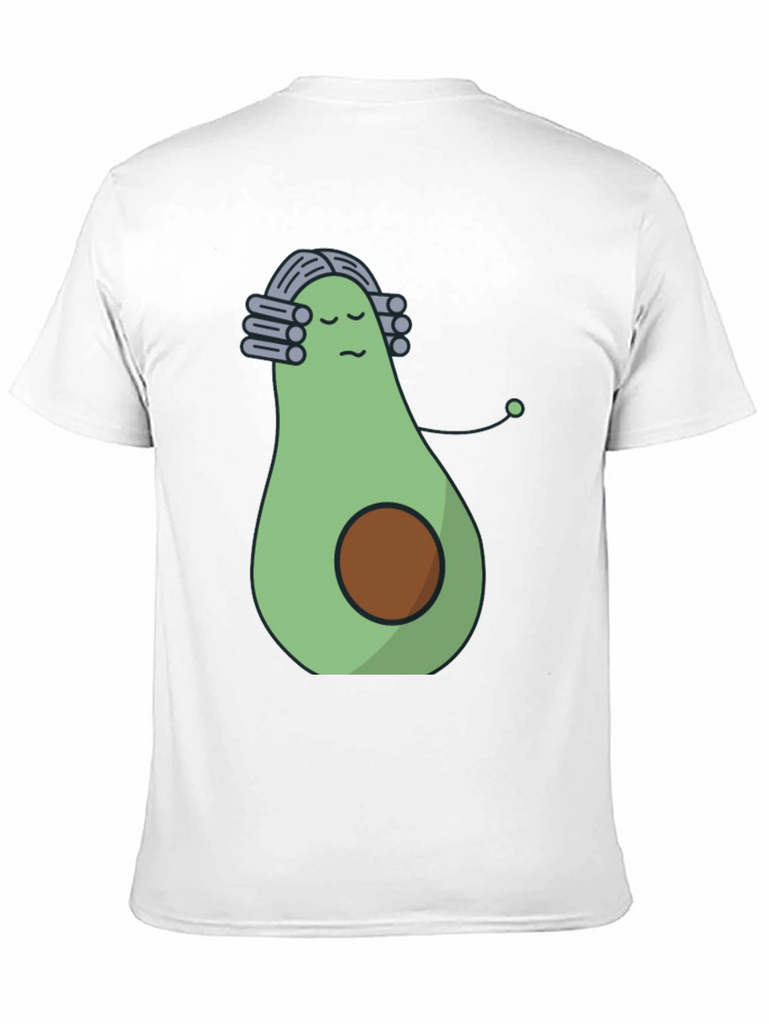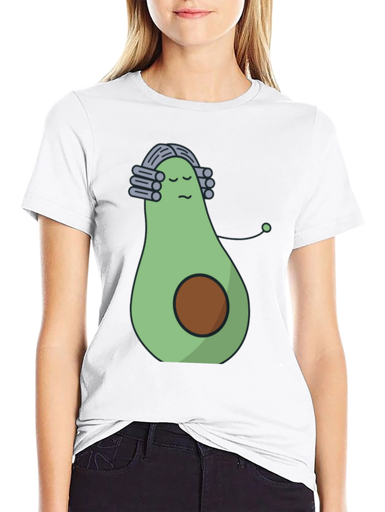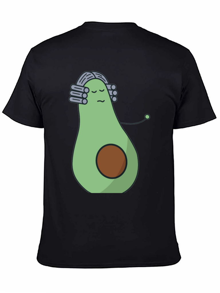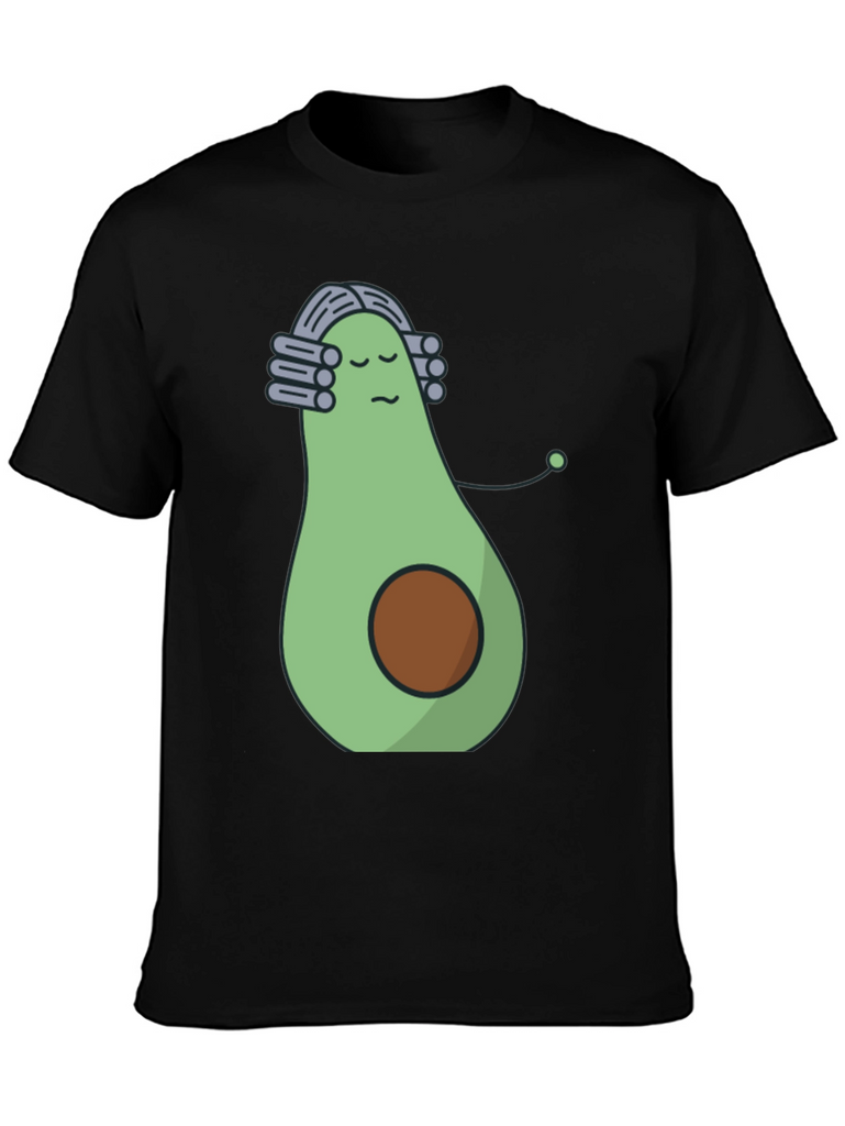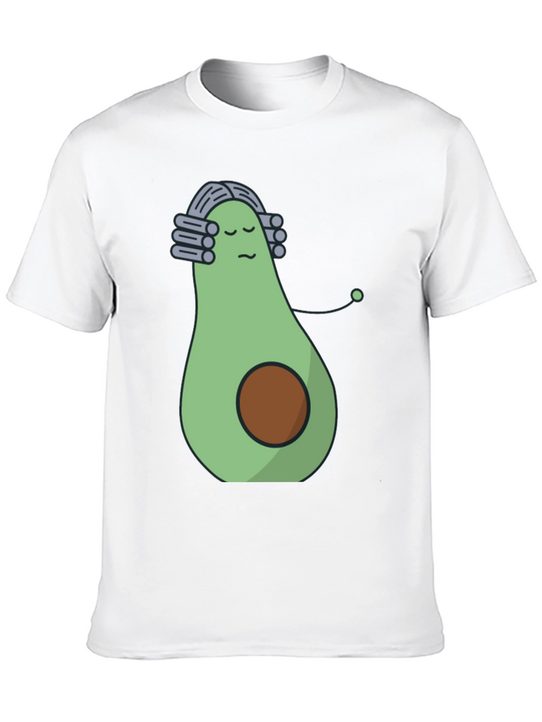 This unique black t-shirt features a creative and humorous design. A green avocado is playfully transformed into Mozart, complete with a gray powdered wig and a melancholy expression. The graphic is printed on a high-quality, presumably cotton, black t-shirt, offering a comfortable fit and a striking visual contrast. Perfect for music lovers, avocado enthusiasts, or anyone with a quirky sense of humor, this t-shirt is sure to turn heads and spark conversations. Wear it casually for everyday outings, to concerts, or as a fun statement piece. It's a fun and stylish way to show off your unique personality!