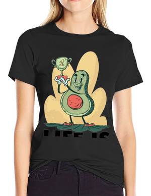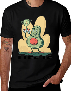 Embrace the sunshine with this unique avocado surfing themed t-shirt! This eye-catching black tee features a fun graphic of an avocado next to a surfboard and palm tree, set against a vibrant sun and wave backdrop. Made from what appears to be a soft, comfortable cotton blend, this t-shirt is perfect for casual wear, beach outings, or anyone who loves avocados and surfing. Show off your playful side and stand out from the crowd with this conversation-starting tee. It's the perfect addition to your summer wardrobe or a great gift for the avocado enthusiast in your life.