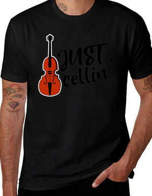 Show off your musical side with this eye-catching black t-shirt. The design features the phrase "Of course I'm Awesome, I play the Cello" above and below an artistic rendering of a cello and bow. This tee is a great way to express your passion for music and cello playing. Made from comfortable materials, this shirt is perfect for casual wear, music practice, or concerts. A unique gift for cello players!