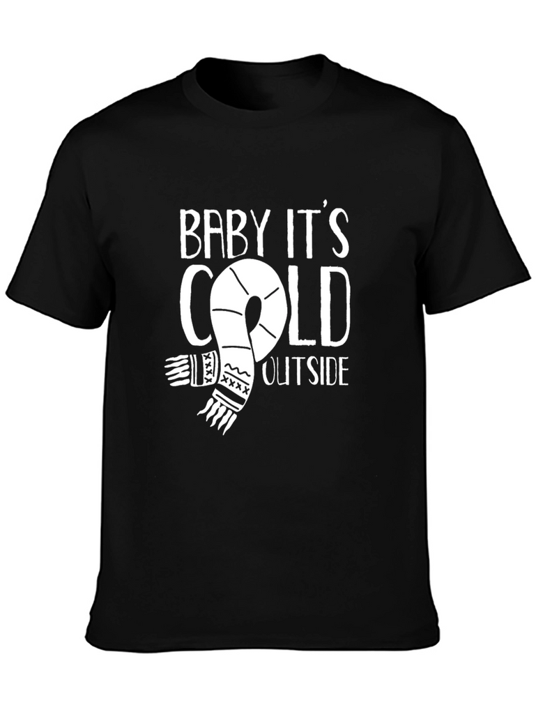 Stay cozy and stylish this winter with our "Baby It's Cold Outside" graphic tee. This black t-shirt features a bold white print with the phrase "Baby It's Cold Outside" and a cute scarf graphic. The classic crew neck and short sleeves make it a versatile piece for layering or wearing on its own. Made from a soft, comfortable fabric, this tee is perfect for casual outings, holiday gatherings, or simply lounging at home. Show off your festive spirit and keep warm with this must-have winter wardrobe staple.